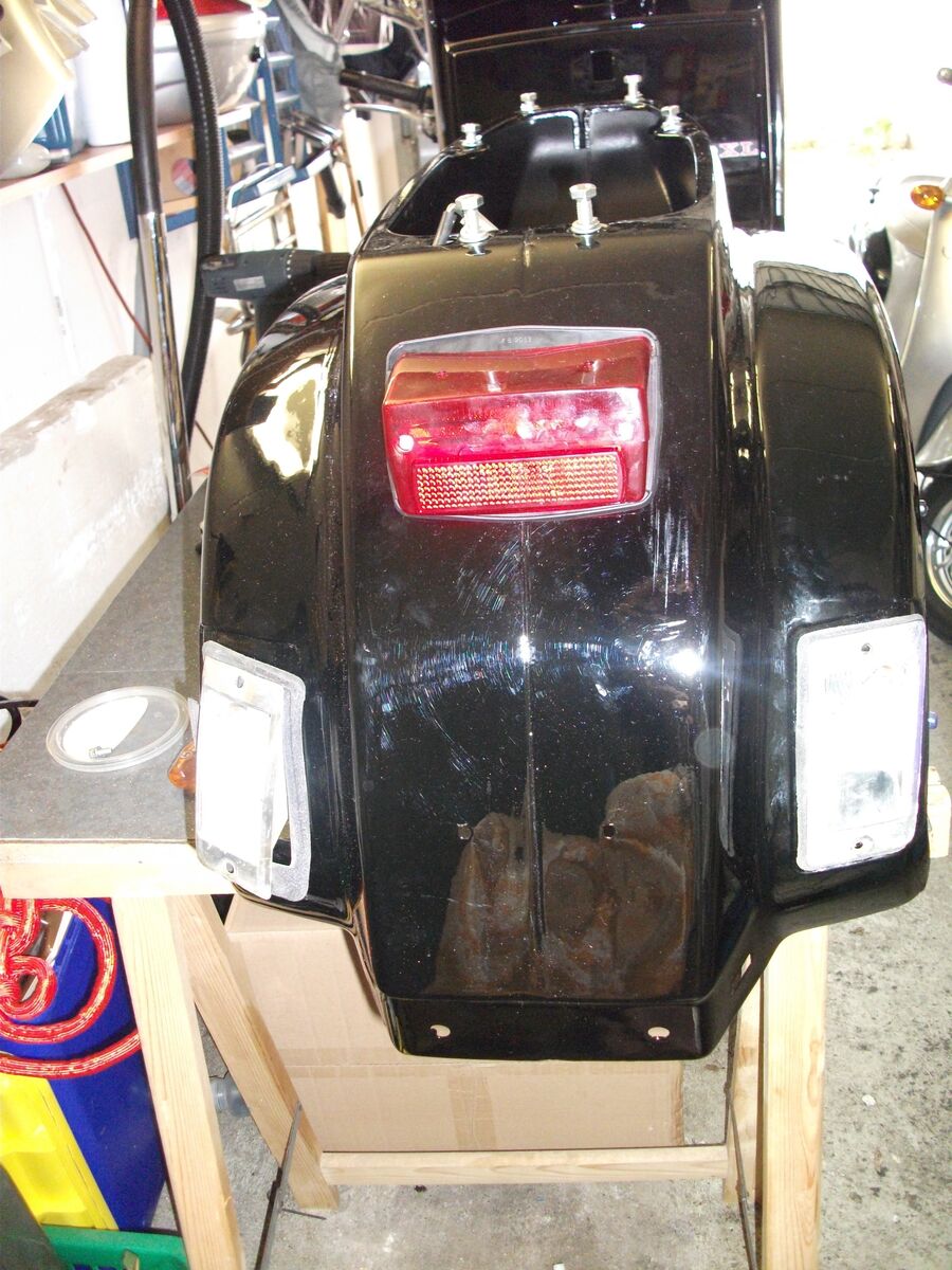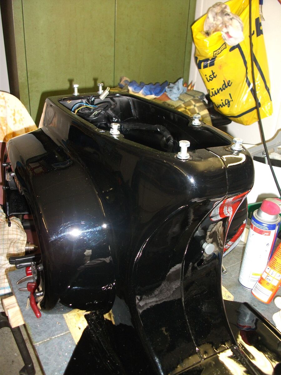 Es geht weiter, habe jetzt den Kabelbaum komplett angeschlossen, die Züge sind drin. Das Rücklicht ist dran. Das Handschuhfach und den Lenker hab ich verkabelt. Muss nur die Lenksäule anbauen, doch dazu später.