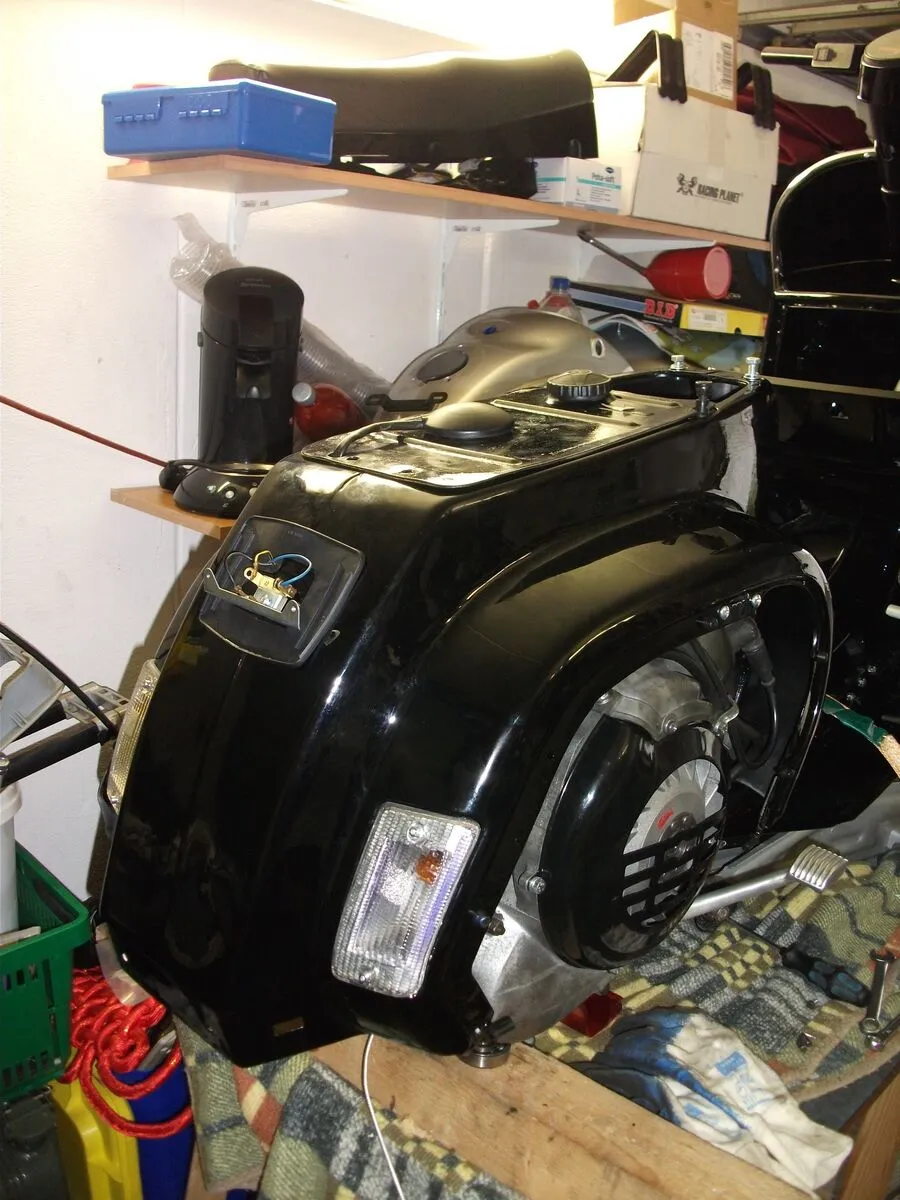 Die nächste und letzte Bestellung werde ich nach meinem Urlaub tätigen. Darin enthalten sind Gummiteile wie Griffe, Bremspedalgummi und die Nippel für die Seitenhauben. Schlösser für das Handschuhfach und für die Sitzbank, diverse Chromteile, einen Rückspiegel, Werzeugbox und Trittleisten. Felgen sowie Stoßdämpfer werde ich auf der Arbeit Glasperlstrahlen lassen. Anschließend werden die Felgen Verchromt und die Dämpfer Lackiert.MfG