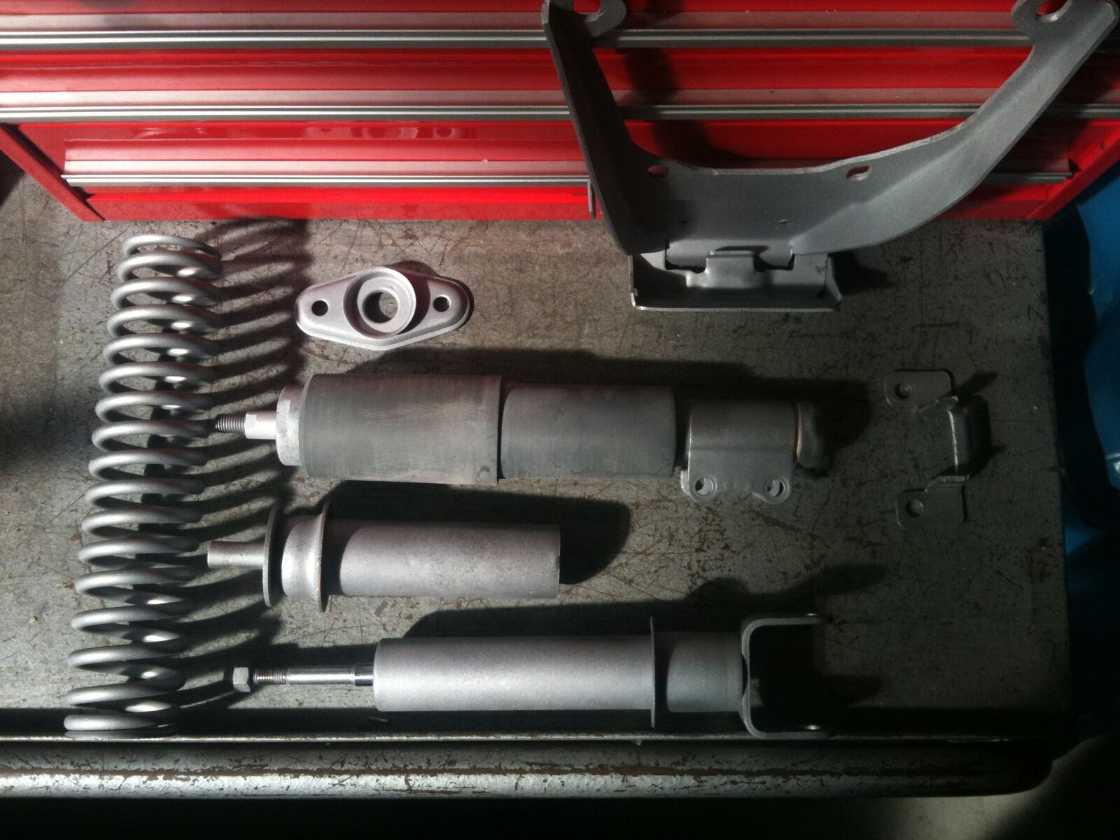 Die Dämpfer sind gestrahlt und lackiert. Sind so alt wie das Mopped selbst. Sind aber noch in einem Einwandfreiem Zustand. Sonst hätte ich neue gekauft. So hat es mich aber nix gekostet. Selbst die passenden Gummis hab ich auf der Arbeit gefunden.