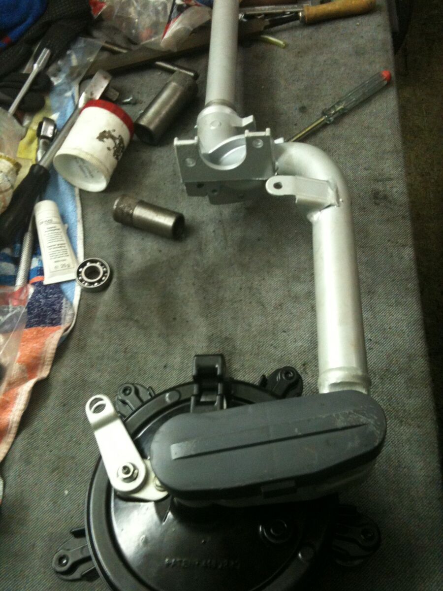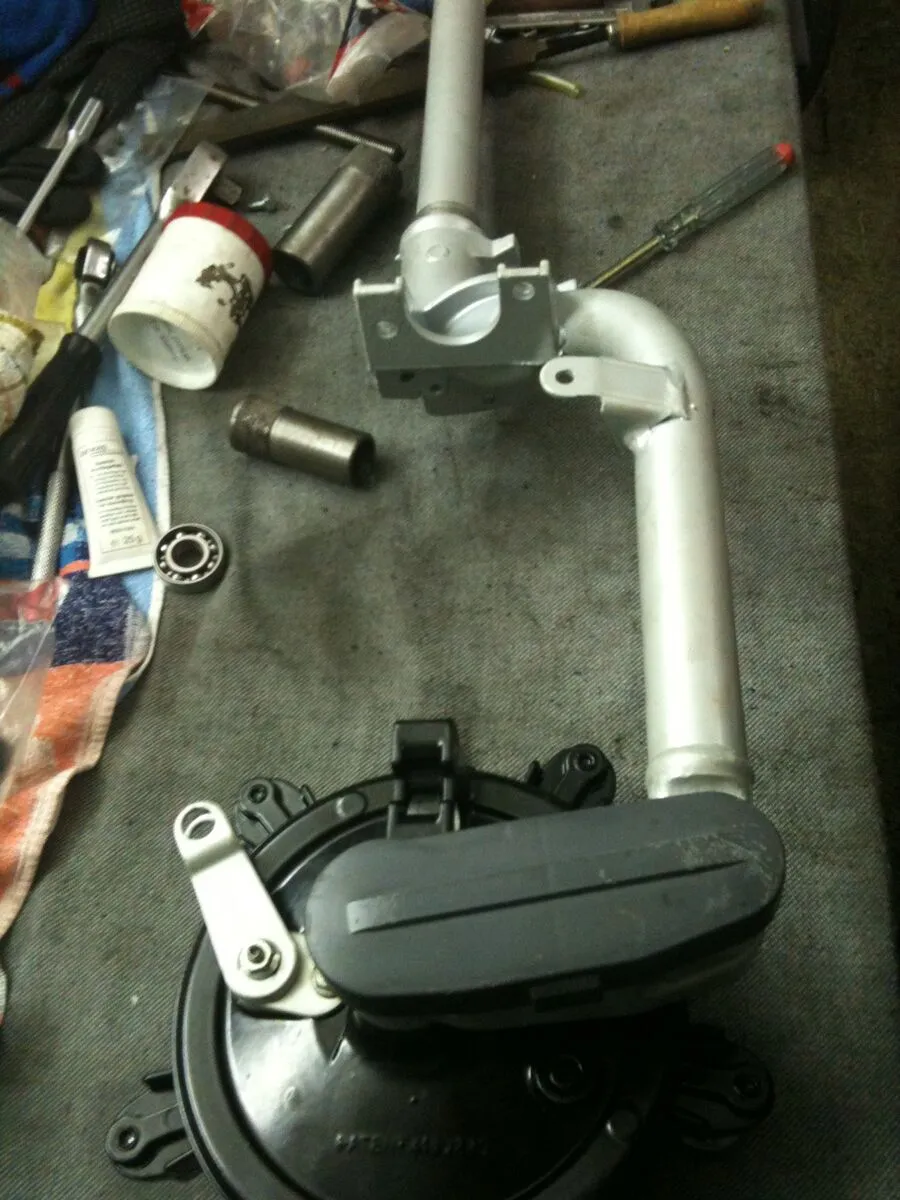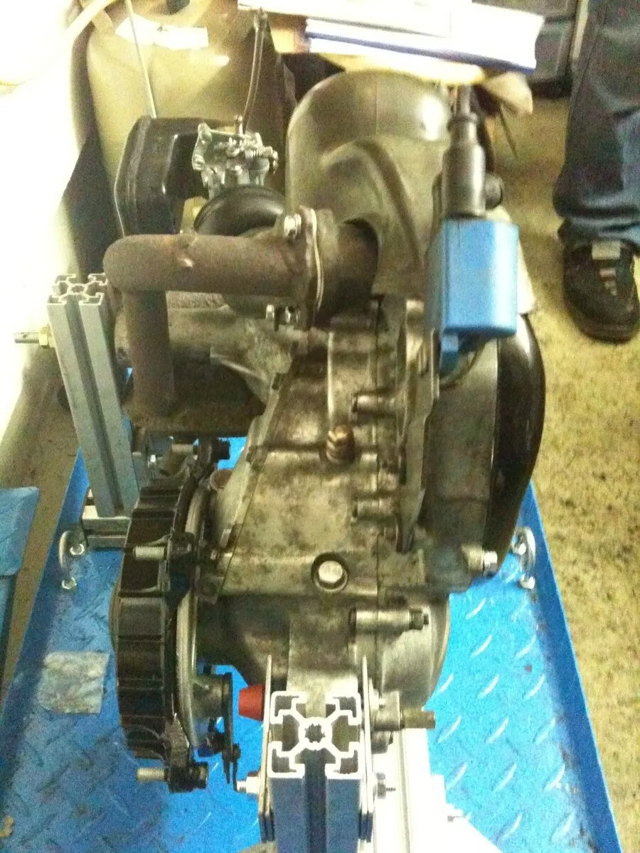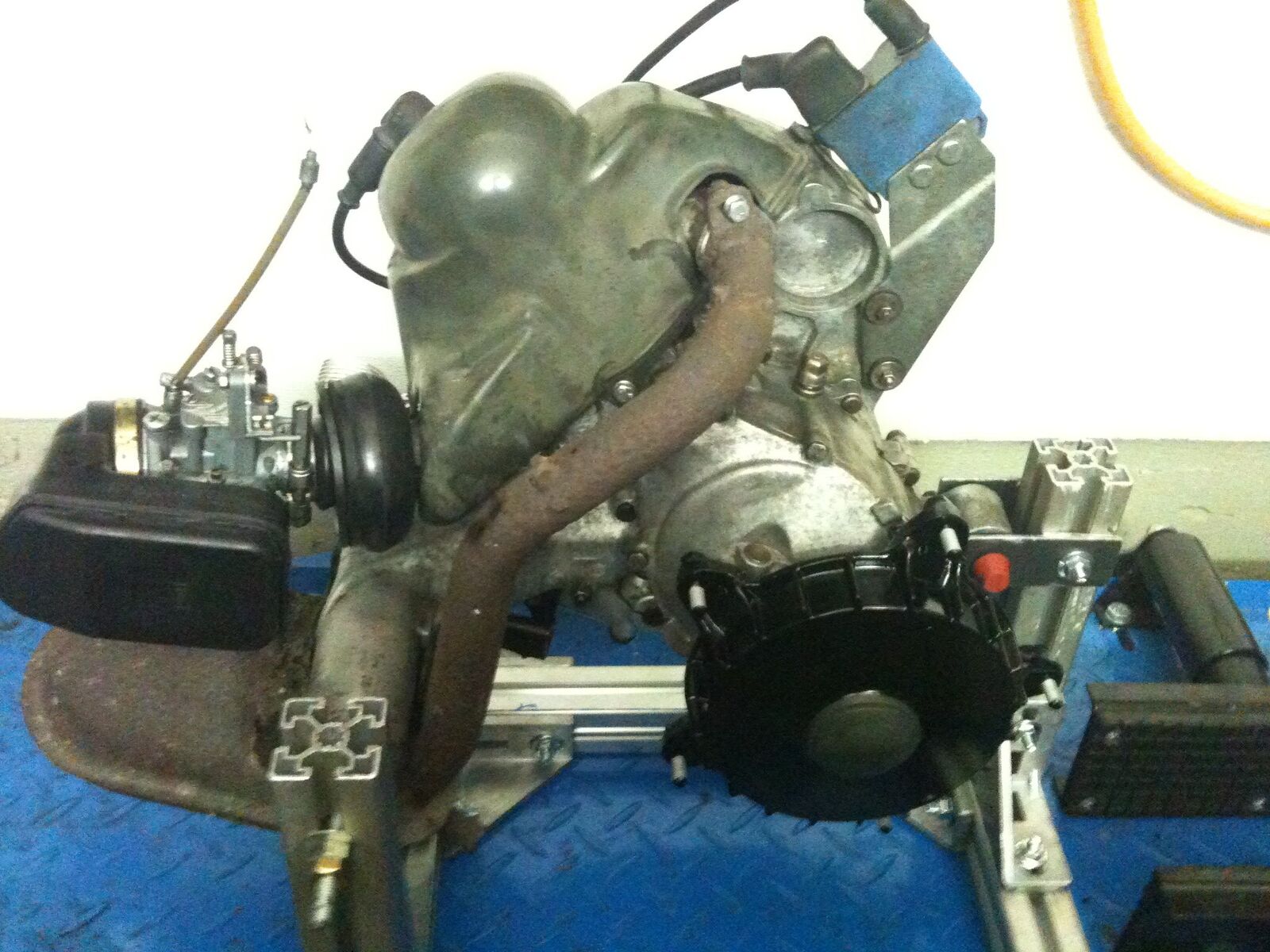 es geht wieder etwas weiter. Habe die Gabel zusammen gebaut und der Motor ist fertig. Da ich noch keinen neuen Auspuff habe, muss zum Testlauf erst einmal der alte Auspuff herhalten. Siehe Krümmer, wie Schweizer Käse durchlöchert. Neuen Stoßdämpfer muss ich auch noch ordern. Den alten wollte ich nicht an die Gabel schrauben.