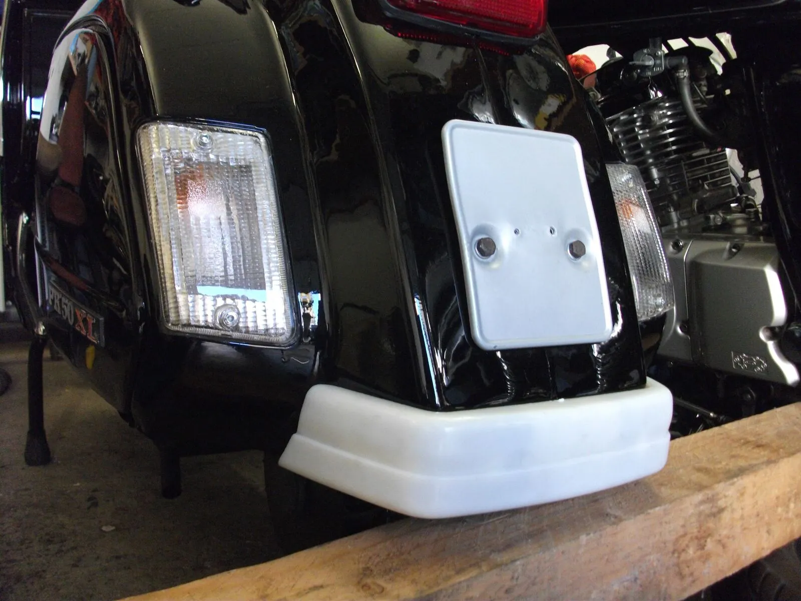 Habe vorhin den Spritzschutz zum lackieren abgegeben. Hoffe das er es mit dem lackieren bis morgen schafft. Nächste Woche kommen dann noch die Verchromten Felgen dazu, wenn ich sie bis nächste Woche bekommen sollte natürlich. Dann noch die Monobank drauf und feddich ist sie! -