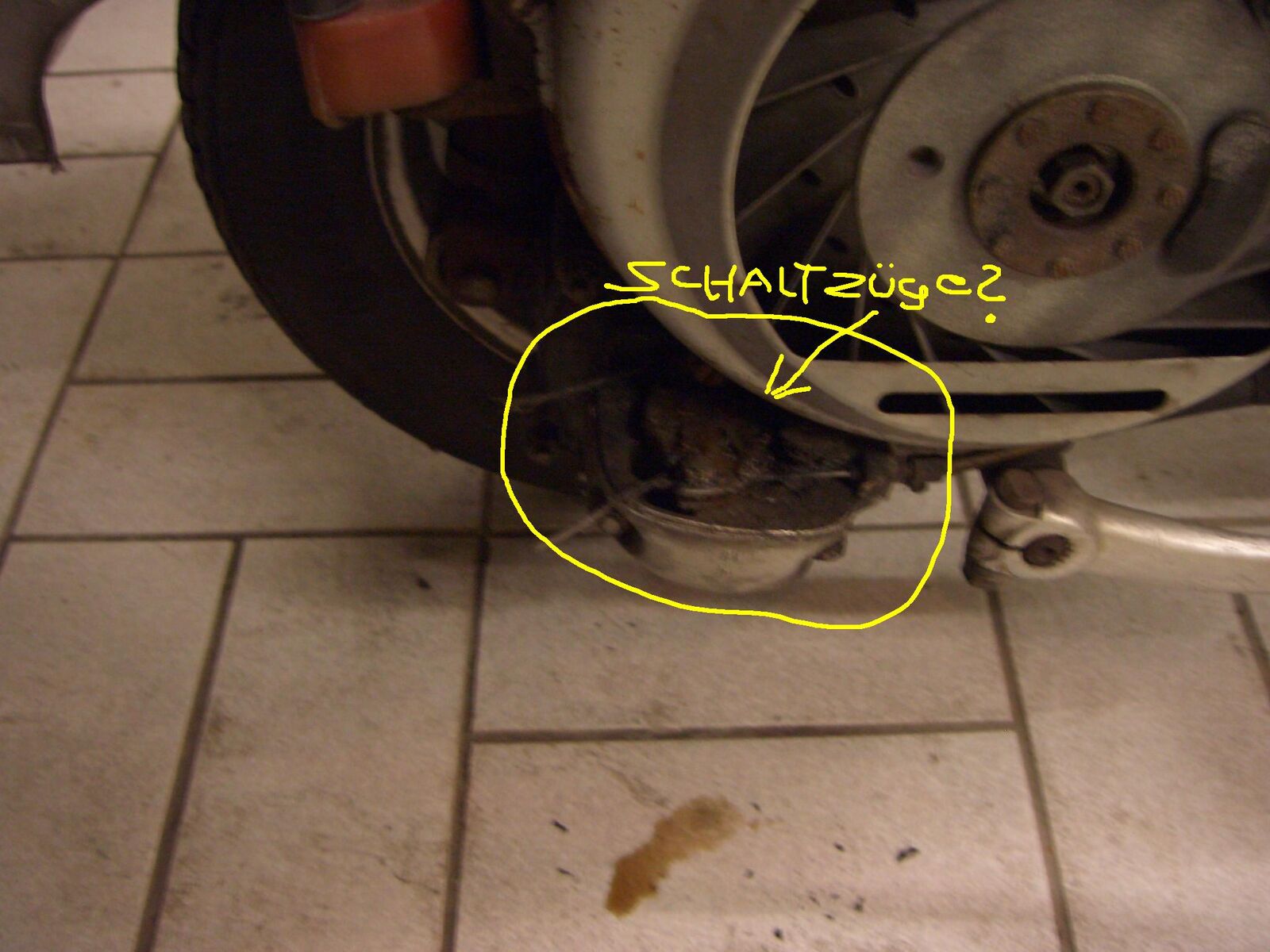 Da sitzt auch ne Klemmschraube drauf, genau wie bei den Gaszügen. Unter dem Motor hast Du dann noch einen dickeren Zug, das ist die Hinterradbremse.