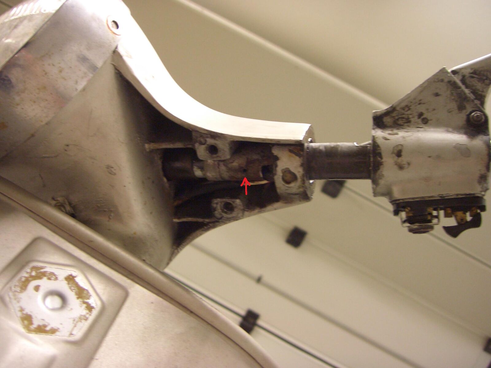• so hier mal ein bild von unte wo der splint drin war den ich rausgemacht hab um das schaltrohr zu lösen weil es festgesessen war.