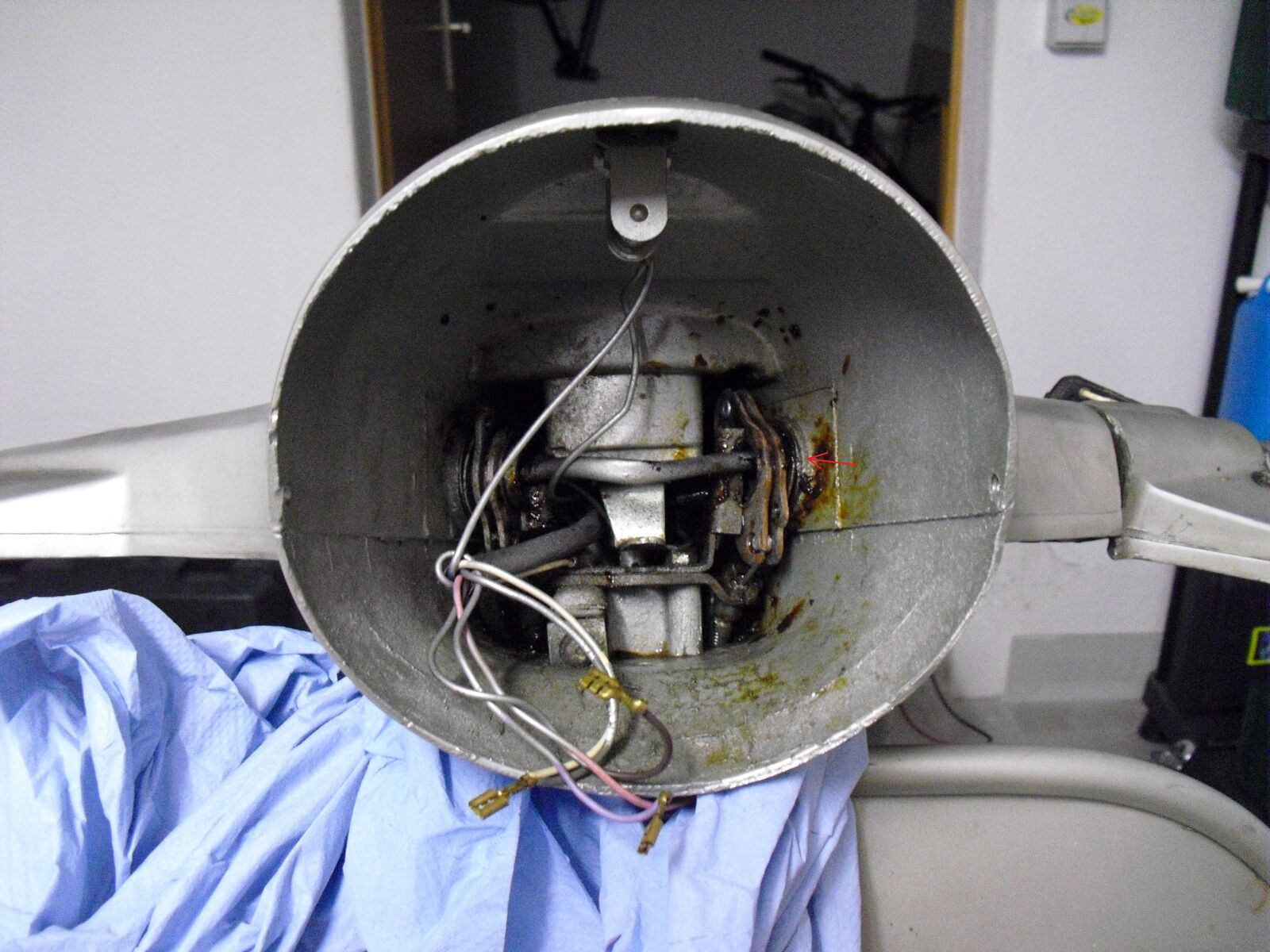 • Mach mal die Schauben vom Lampenzierring ab, dann kannst Du den ganzen Scheinwerfer rausnehmen, dann siehst Du mehr und weißt schon, wo's langgeht.