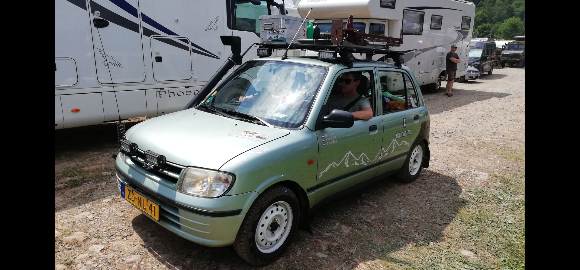 War bestimmt fürs Dachzelt. Aber er hat ein Saisonkennzeichen dran. 10-4. Wintercamping am Polarkreis