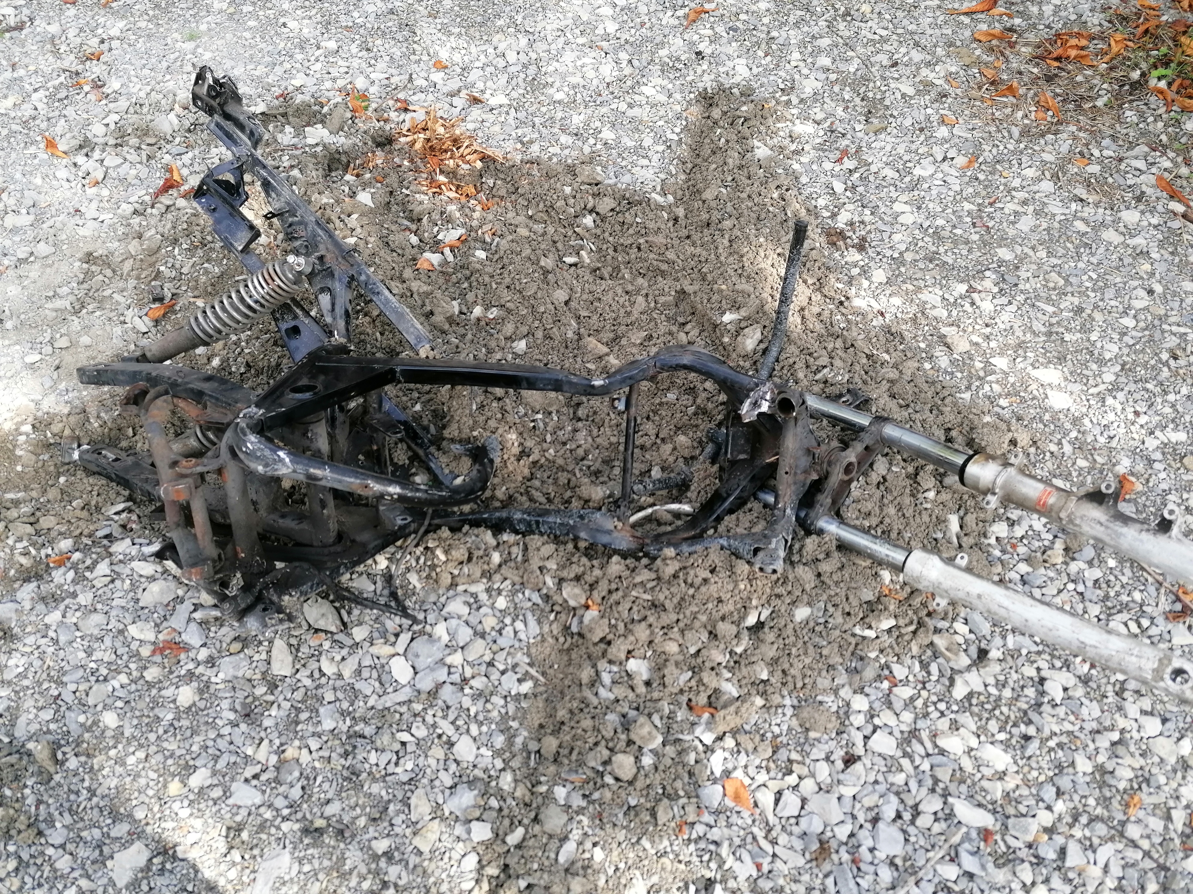 Habe die für nen Kumpel geschlachtet. Sein Bruder hatte nen Unfall mit gehabt. Der Motor ist noch ok. Rahmen ist krumm gewesen. Aber bevor jemand auf die Idee kommt den zu richten wurde er mit nen Frontlader zerdrückt. Die Felgen flexe ich noch kaputt bzw kloppe mit nen Motek drauf. Die habe beide leicht einen weg.