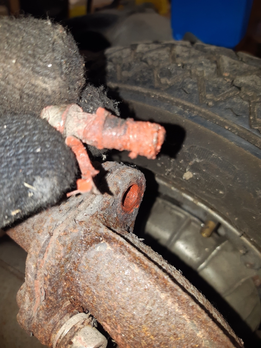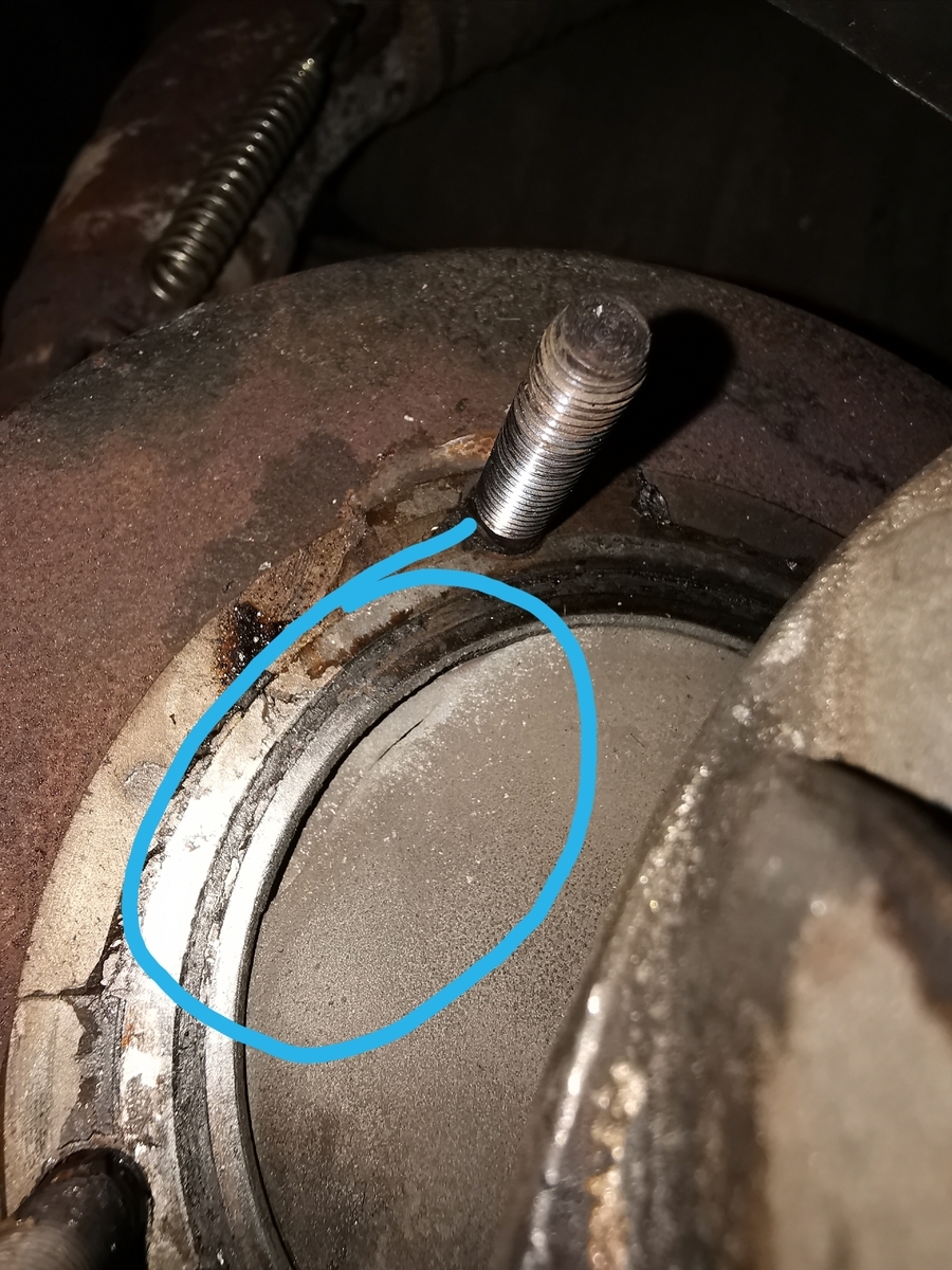 2013 Platten im Elsass, Krümmerschraube gerissen. Wurde am Straßenrand mit Berner eingeklebt, hat bis zum Start der Motorrevision am Donnerstag so gehalten :-3