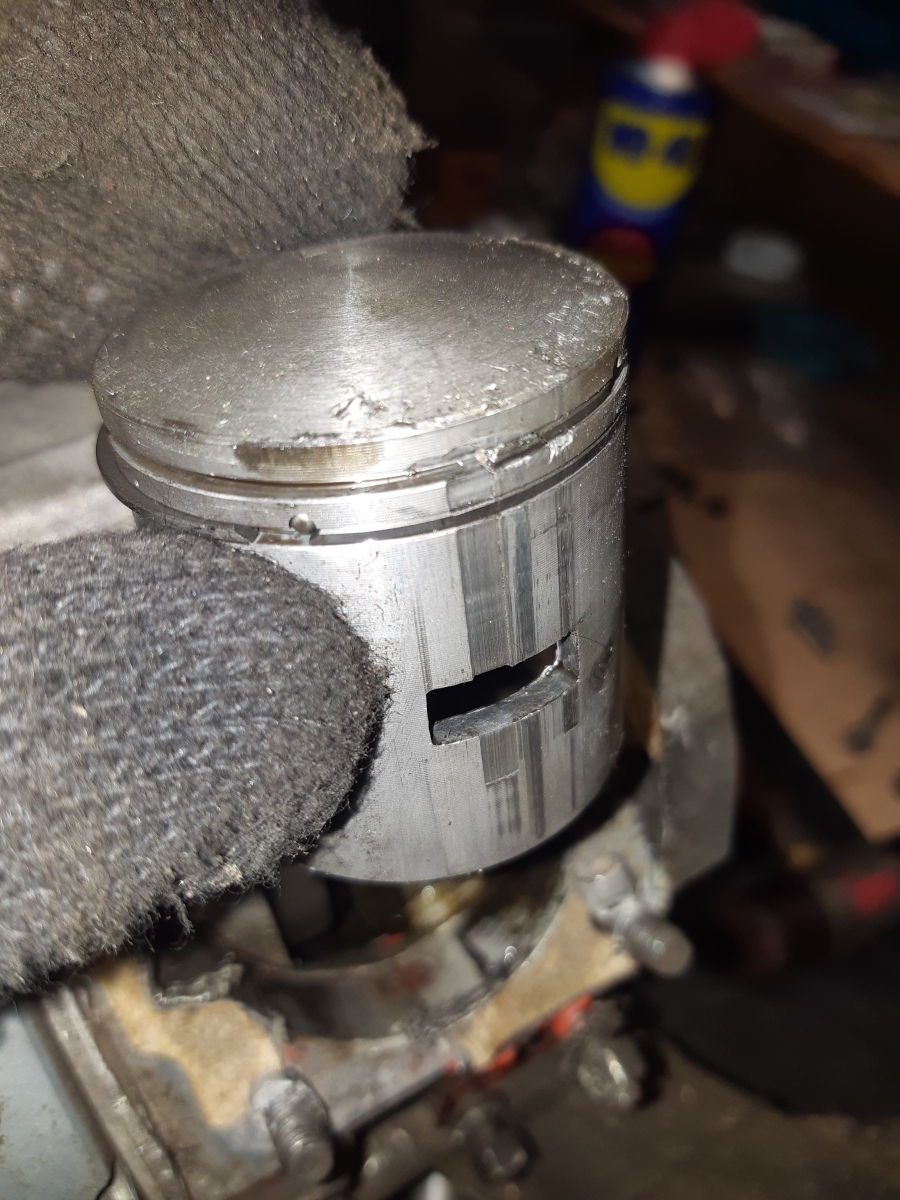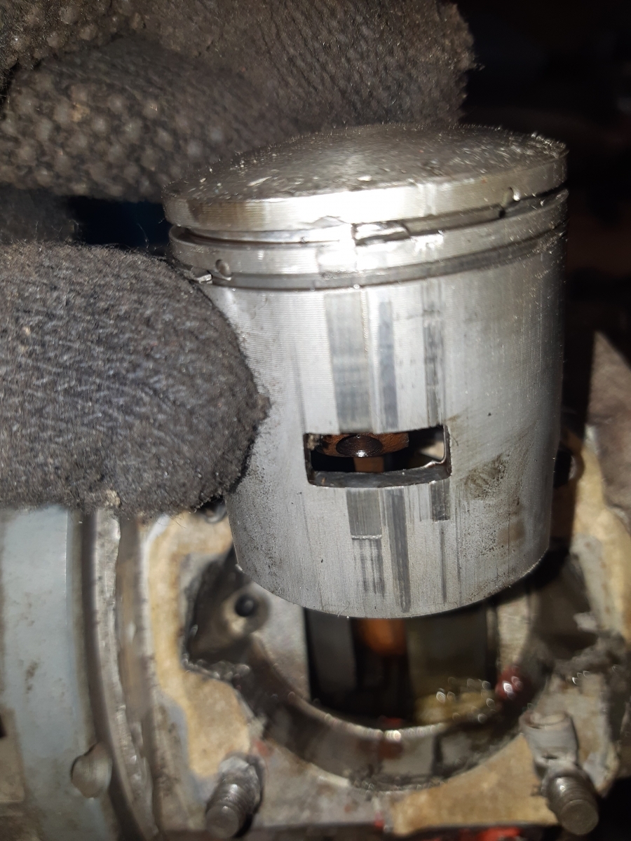 Aber neuer Kolben rein, Zylinder vernünftig entgraten, dann läuft er wieder. Laufbahn hat so gut wie nix abbekommen.