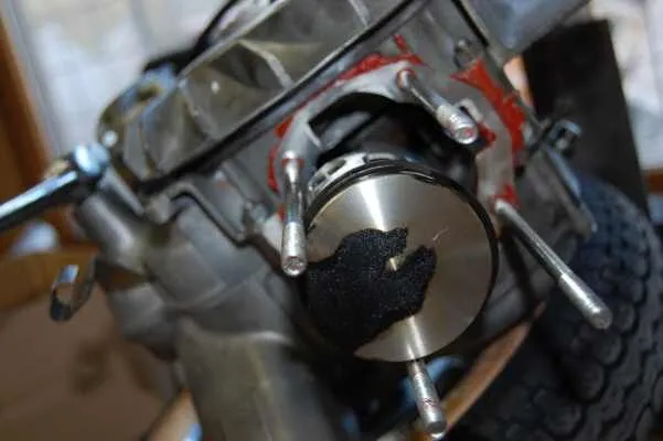 Wer macht denn bitte so etwas ?So sieht es aus, wenn der Kolben richtig fett im Getriebeöl läuft, weil das Motorgehäuse zwischen Kurbelgehäuse und Getriebe "etwas" undicht ist.
