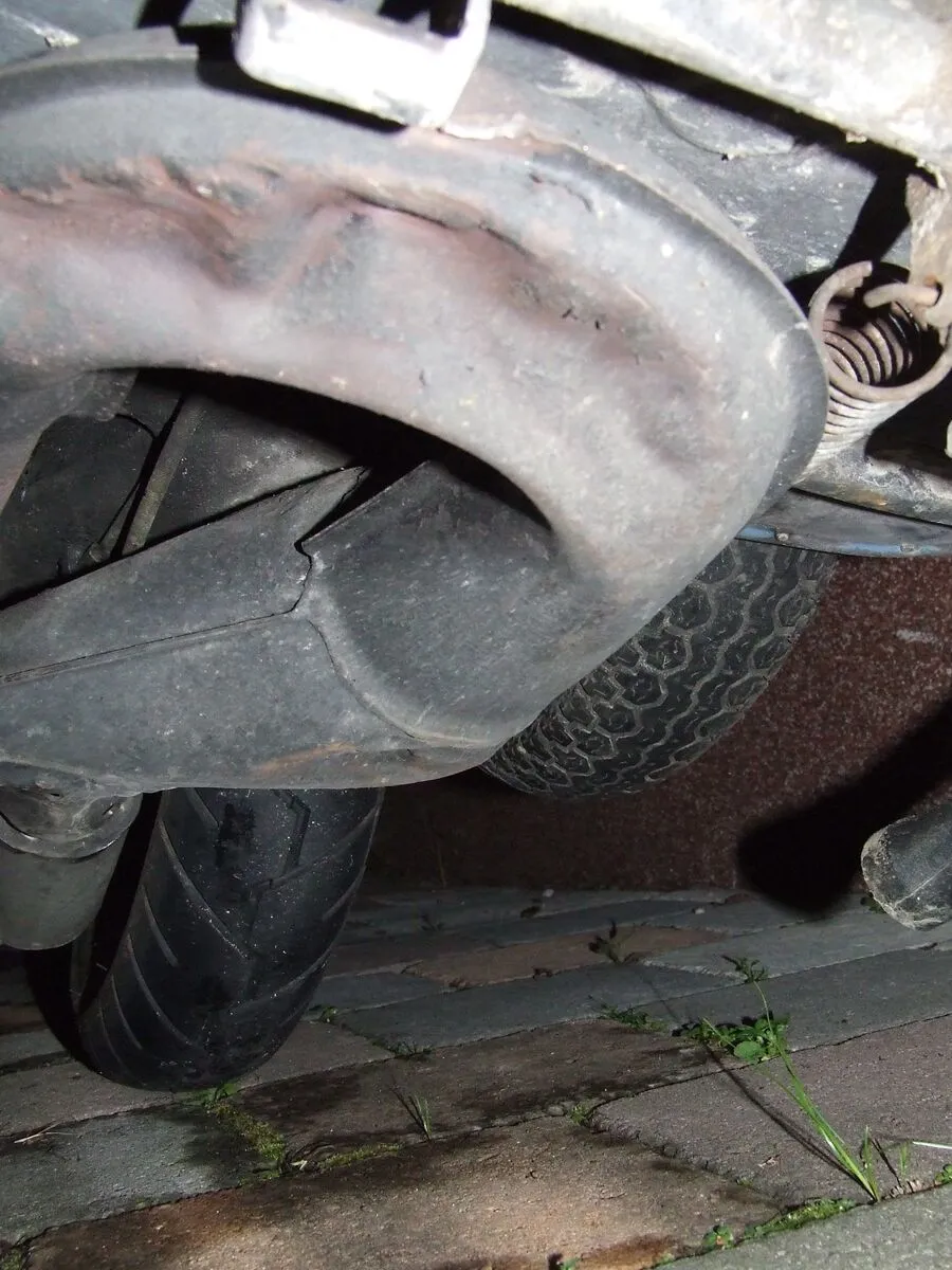 die vespa die ich grad zum richten bekomme habe. der vorbesitzer hat die ganz schön verhunackelt...lackierung soweit ok...trittbrett madigst geschweisst. zylinderhutze nicht montiert, kein luftfilter, vordere bremse nicht intakt, plastiknase locker, hintere bremse total falsch eingestellt, kupplung falsch eingestellt und höchstwarscheinlich im sack (mal kucken). Der jetzige besitzer ist sie ca 2-3 km gefahren und hatte dann direkt nen kleinen reiber...kann er ja nicht wissen, dass da ne hutze draufgehört.