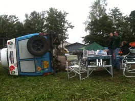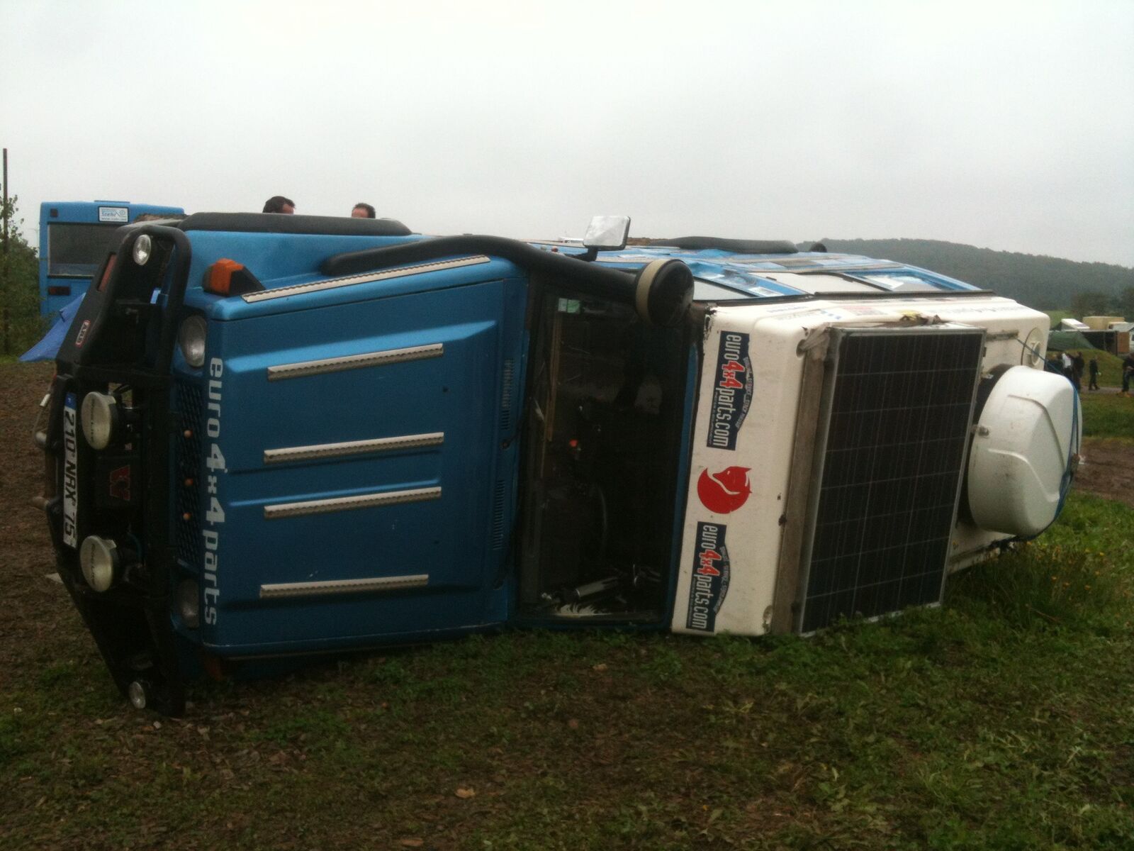 so werben toyota landcruiser fahrer für ihr buch von ihrer weltreise. und damit mußte er noch wieder zurück nach frankreich. immerhin lief er wieder als er stand...