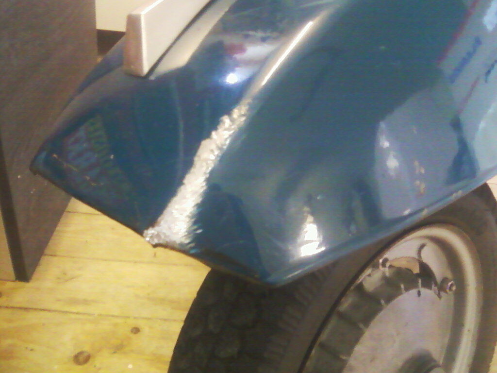 Der Plan ist jetzt folgender: Farbe besorgen, dengeln(lernen), zinnen, beilackieren. Wird schon werden. Bis auf das Lenkeroberteil und den Scheinwerfer ist der Rest wohl rettbar, das werde ich auch versuchen. Was dann später noch sichtbar ist oder nicht perfekt aussieht zähle ich zu Kampfspuren und gehört dann ab jetzt halt dazu.