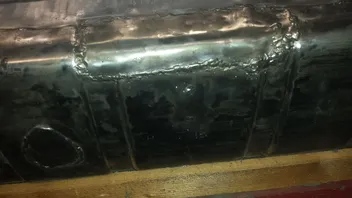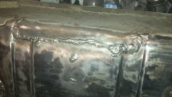War damals ein loch im tank. Das haben sie verschlossen und dann das tankschutzblech drunter geschweißt. Soweit nicht dramatisch. Bis ich eben die schweißerei gesehen habe nachdem ich die ganze Unterbodenscheiße abgeschliffen hatte. Zum glück ist noch alles dicht. Also rostschutz drüber und wieder einbauen mit neuen tankschutzblech damit man die van Helsing nummer nicht sieht.- Ach ja. 1 std an der Oberseite geschliffen,olack und 3 std unten....