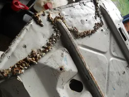 Und mal wieder was neues von mir. Bei meiner neuesten Fundsache,die ich heute mal genauer ansah, sah ich einen wahren Streuselkuchen....unterm Bodenblech, ein echter Streusel mit Zuckerguß - ein begnadeter Konditor