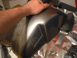 Das halteBlech befindet sich einmal unterhalb des oberen Gabelendes ist zwischen Stoßdaämpfer und Gabel geschraubt und zustzlich mit 2 M6 Schrauben an die Gabel geschraubt. Das Blech selbst ist 2mm stark und Feuerverzinkt. Hinter dem Blech befinden sich senkrecht zwei Stahlrohre (Innenurchmesser M6) auf welchen der Kotflügel aufliegt. Zwischen Rohr und Koti befindet sich jeweils noch ein kleiner Gummi.