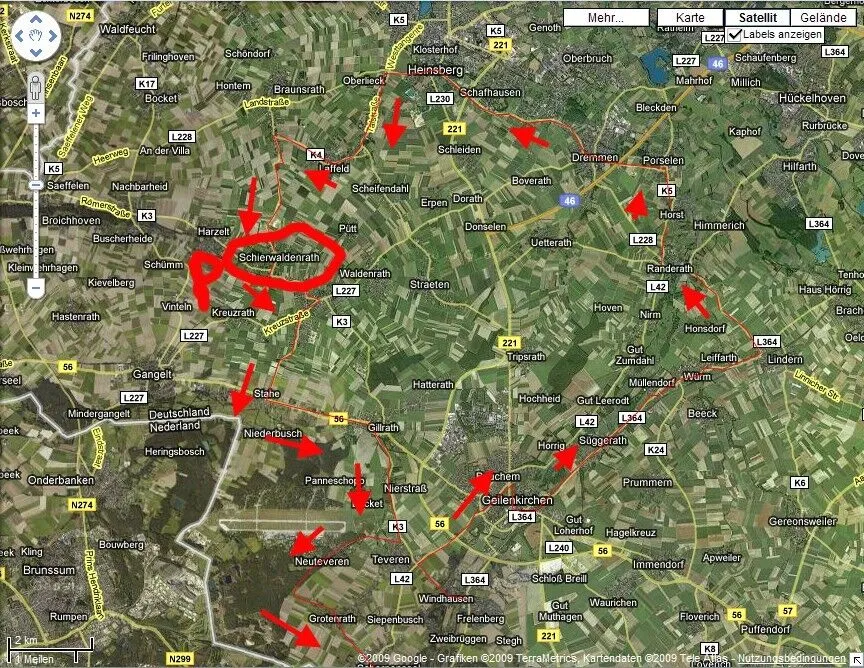 Mit Anfahrt aus Aachen wären das dann so knappe 60 Kilometer. Also nicht so furchtbar viel. Je nach interesse kann man das aber durch die vielen Dörfer sehr leicht, und eigentlich immer schön ausweiten.