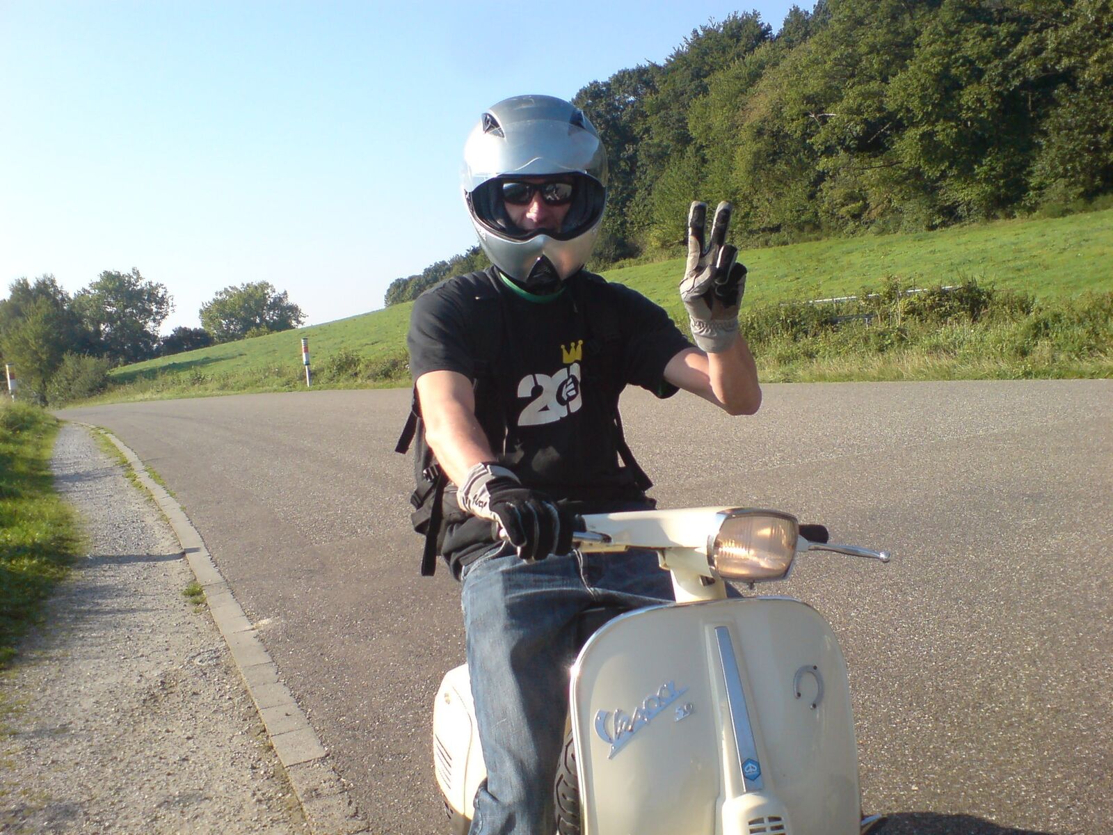 Nun habe ich meine Vespa und si fährt und ist auch angemeldet... Problem ist nur das ich sie nur mit choke fahren kann da sie sonst keine leistung mehr hat und einfach ausgeht. War aber eben schon bei einem bekannten in dürwiß (eschweiler) der einen kleinen scooter laden eröffnet hat und schon ewig an vespen schraubt. Werde mit ihm am Samstag dann einen 75ccm DR verbauen und evtl noch einen sito plus ohne drossel. Möchte aber nicht so viel dran machen da sie schon stolze 28000 gelaufen ist und es sonst auch zu teuer wird