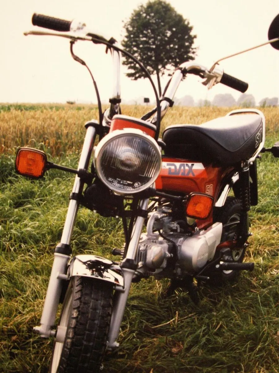 • Hab auch ne Honda Dax . Da sieht aber schon der Lenker ganz anders aus . Es gab mal zu meiner Jugendzeit eine Honda CY 50 die hatte solche Räder und als Gegenstück eine Suzuki RV 50 . Das kommt schon eher hin.