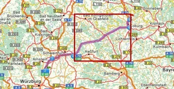 Ich will von Würzburg nach Coburg fahren. Mit dem 50er Roller. Dabei gehjt ein grossteil der Strecke über die Bundesstrasse.