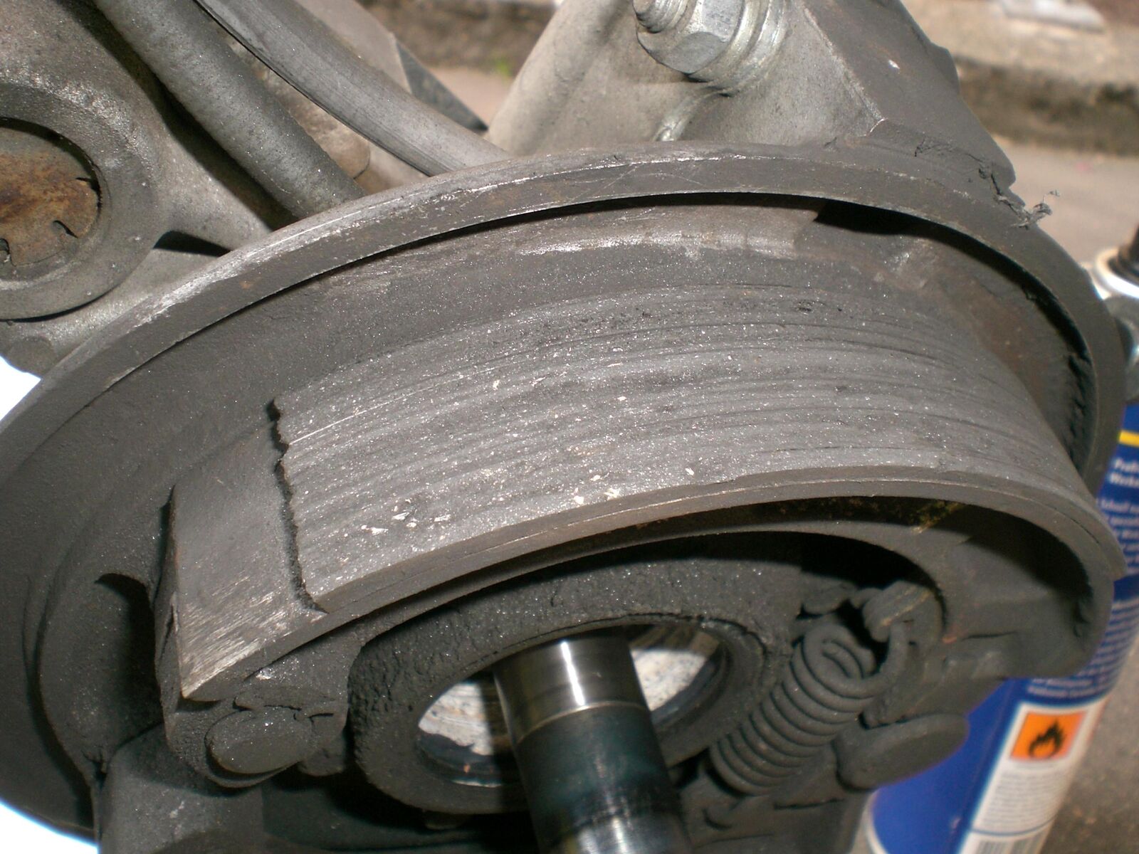 Diese Trommel musst du so tief ausdrehen, dass du mit normalen neuen Belägen nicht mehr hinkommst.