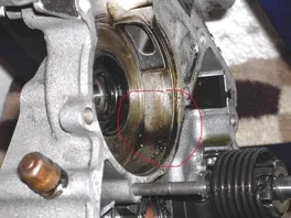 Im ersten Bild sind die Aluspäne im Kubelwellengehäuse klar zu erkennen. Die Kurbelwelle schleift leicht im Gehäuse.