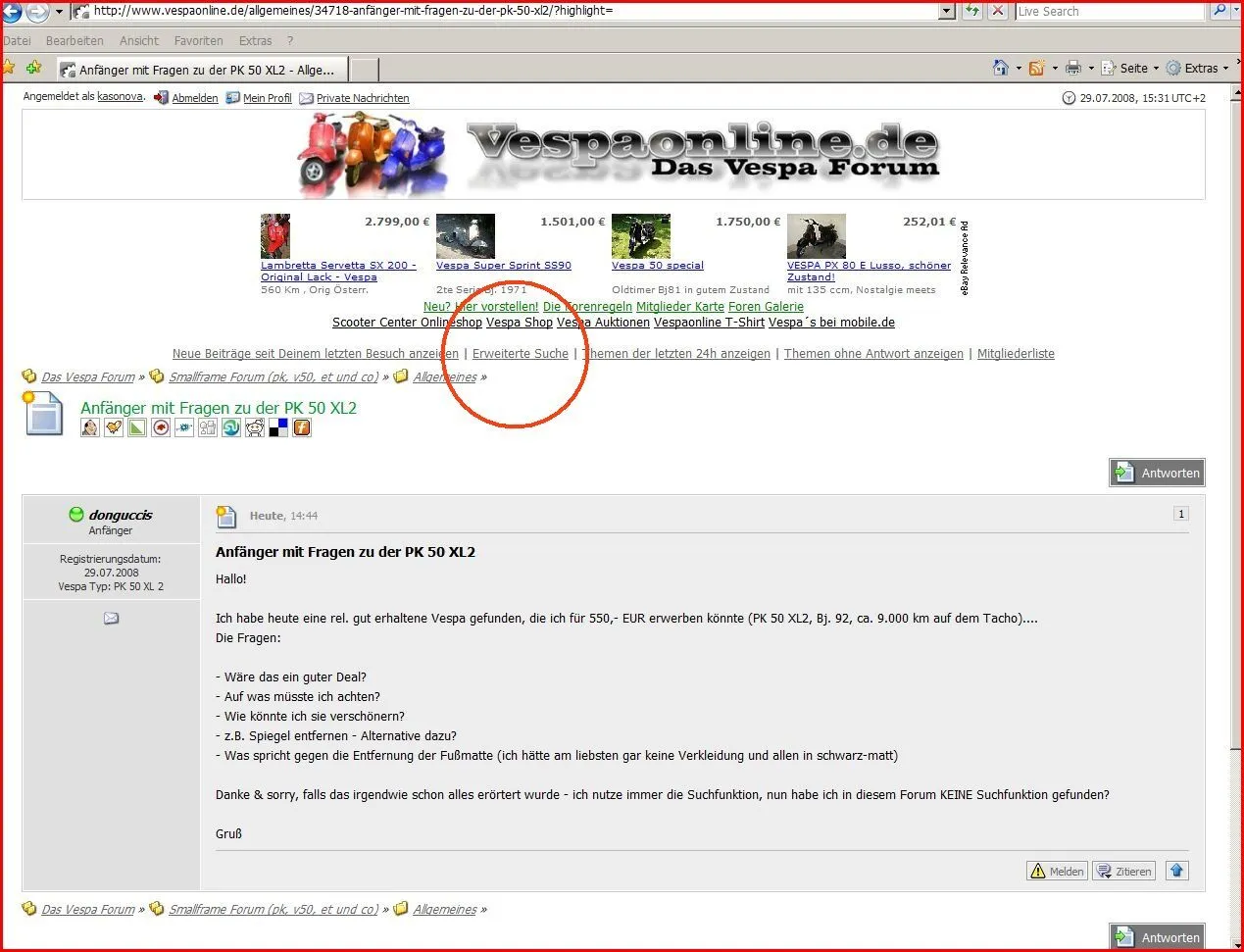 Ich habe heute eine rel. gut erhaltene Vespa gefunden, die ich für 550,- EUR erwerben könnte (PK 50 XL2, Bj. 92, ca. 9.000 km auf dem Tacho)....