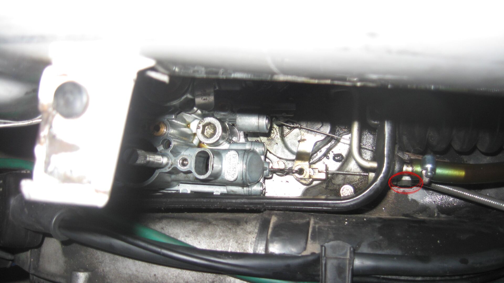 Also Vergaserabdeckung ab, Luftfilter ab, Metallhaken wieder eingehängt. Das ging schon verdächtig leicht. Ich glaub der ist verbogen oder dieses kleine Loch im Vergaser wo er durchgeht ist zu groß. Keine Ahnung genau, ich werde mal Bilder nachliefern falls gewünscht.