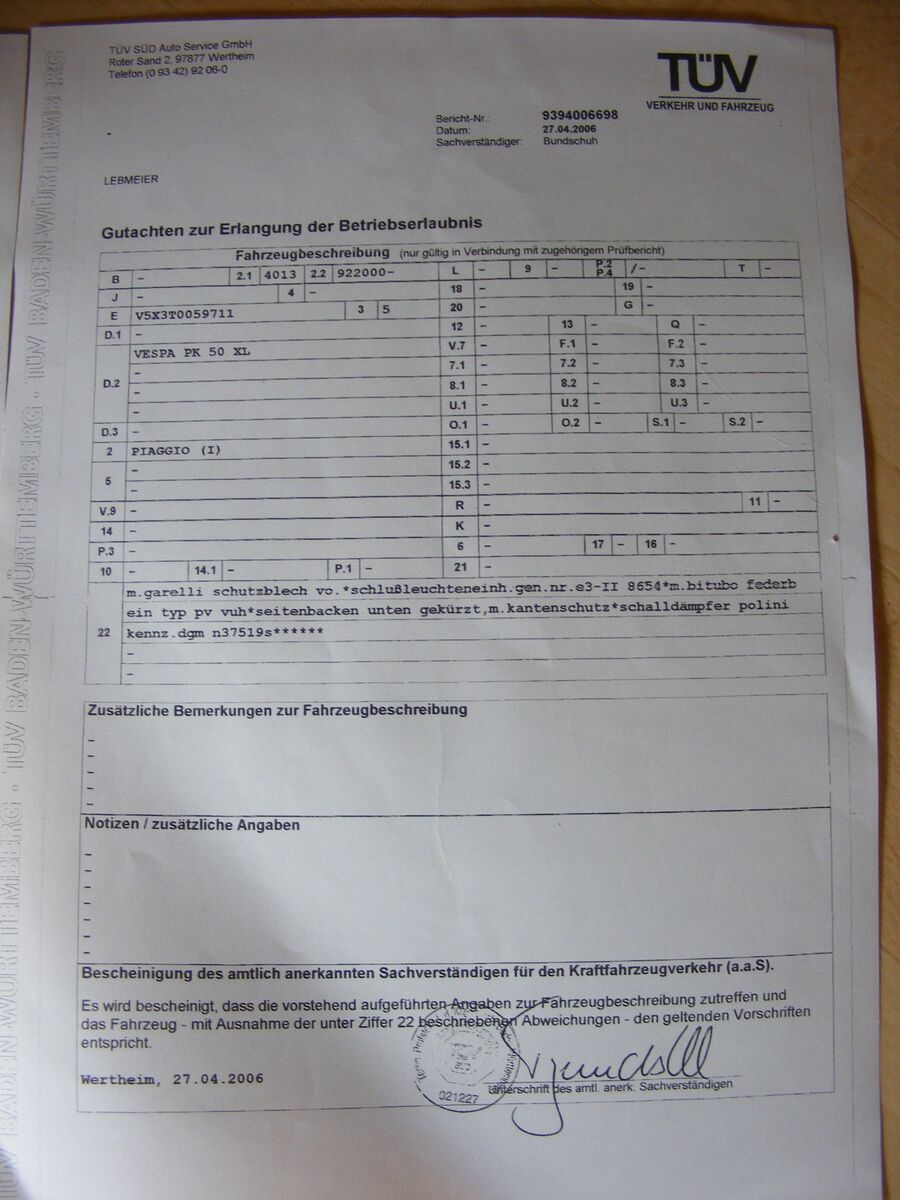 Polini Lefthand Eintragung auf ner PK 50 Xl