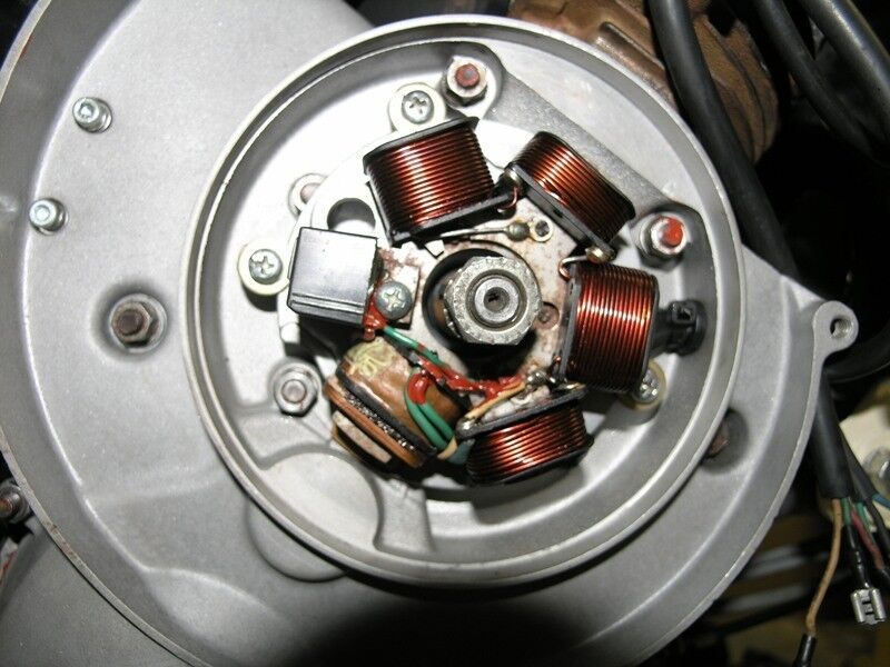 Ausgang Lima 5 Kabel: Zündspule, Kill und dann 3 Stromkreise:für Bremse(blau) Hupe(grün) und Licht(gelb).