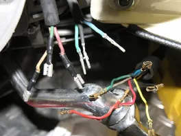 Ausgang Lima 5 Kabel: Zündspule, Kill und dann 3 Stromkreise:für Bremse(blau) Hupe(grün) und Licht(gelb).