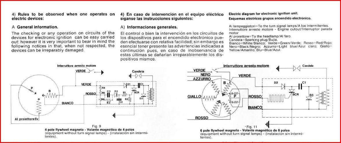 Hi, doch es gibt einen Begrenzer, der gehört zu dem Drosselsatz von Alpha Technik (Mofadrossel) aber ich könnte nicht sagen das der wesentlich drosselt. Die Vespa läuft dann im zweiten Gang noch gut 30 Km/h (der dritte ung vierte Gang sind gesperrt) Hier noch mal für alle die glauben die CDI währe NUR eine Zündspule welche man ohne weiteres manipulieren könnte. Die mit "C" bezeineten Bauteile sind Condensatoren, mit "D" sind Dioden bezeichnet, mit "R" werden Widerstände bezeichnet und "SCR" bezeichet einen Thyristor Triac etc. Die eigenliche Zündspule liegt jeweils ganz rechts und mit "Candela" ist die Zündkerze gemeint. klaus