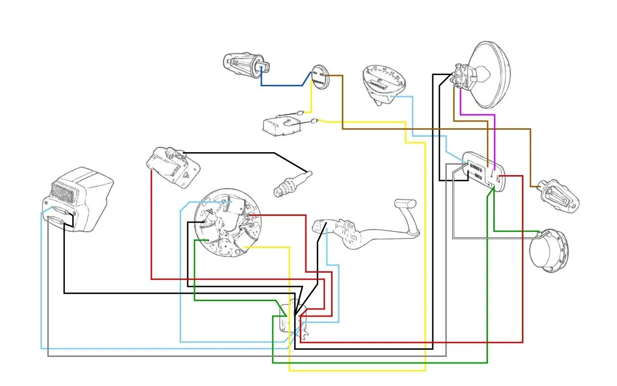 Ich habe die Vespa zerlegt gekauft und zusammengebaut. Der Motor lief auch gleich anstandslos an. Nun habe ich aber noch die Kabel im Kabelkäszchen mit Steckern versehen, da diese teilweise fehlten. Das gelbe Kabel kommt von der Zündspule.