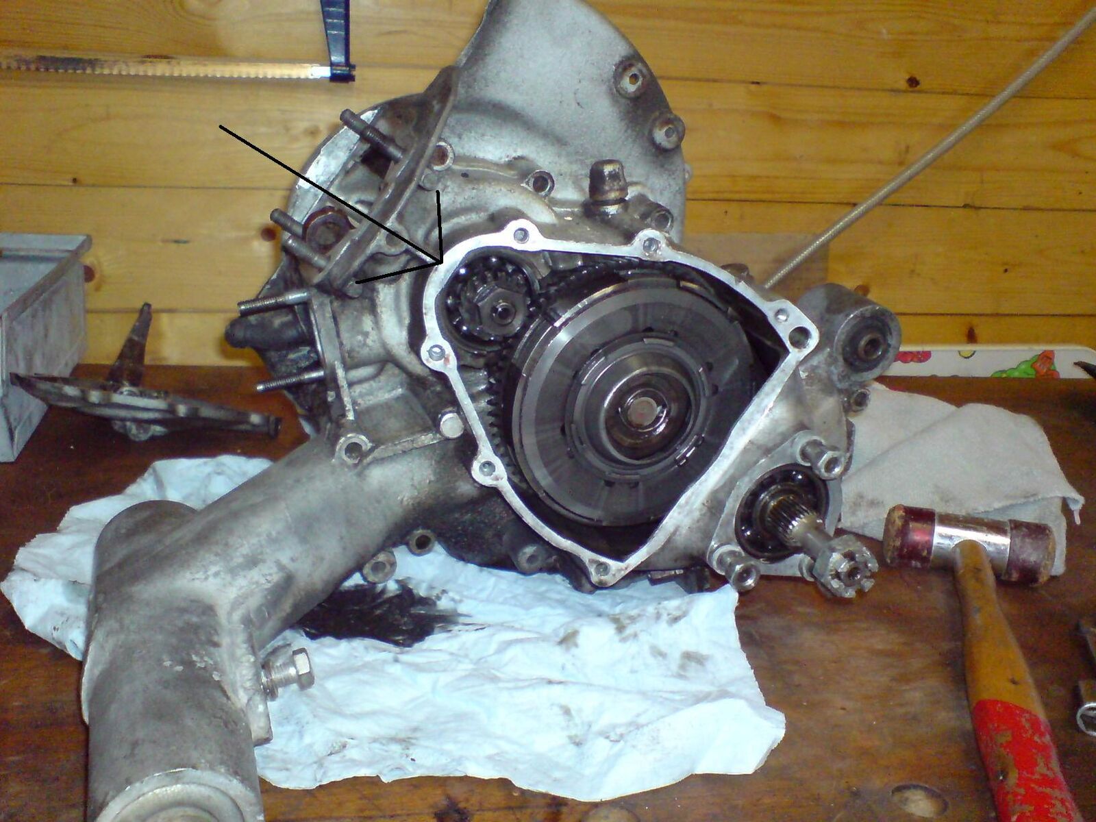 • ...Blödsinn, ich meinte natürlich mit dem Gummihammer auf KURBELwelle (von der Seite, wo das kleine Primärritzel vorher saß!) und Antriebswelle klopfen, nicht auf die Nebenwelle klopfen!
