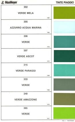 Vielleicht hat ja jemand seine Vespe in einen von den beiden Farben mal lackiert. Vor allem das VERDE 365 hab ich glaube ich noch nie gesehen.