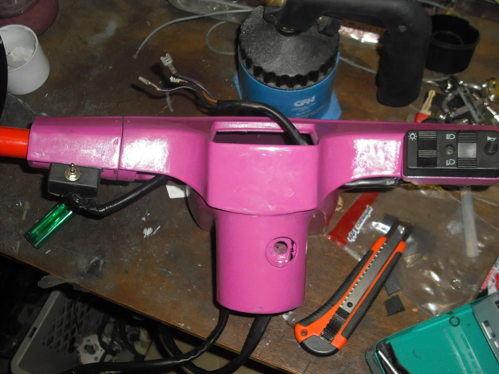 Pk Lichtschalter in den Lenkkopf eingebaut, und der neue Blinkerschalter verlötet und eingezogen.