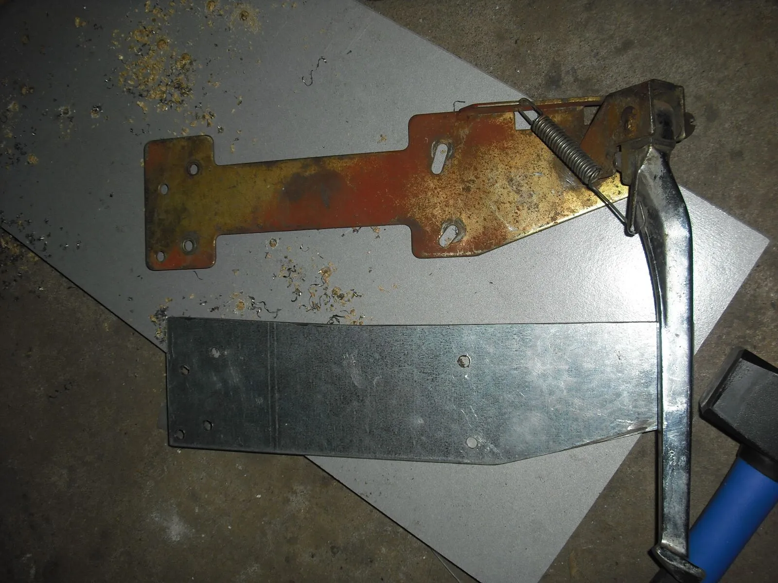 eben noch ein 3 mm feuerverzinktes Stahlblech geholt und die passende Flexscheibe. Damit wird dann der Seitenständer verstärkt, zum Schutz des Trittblechs.