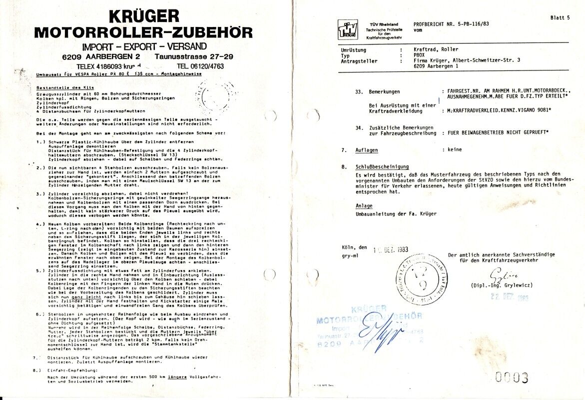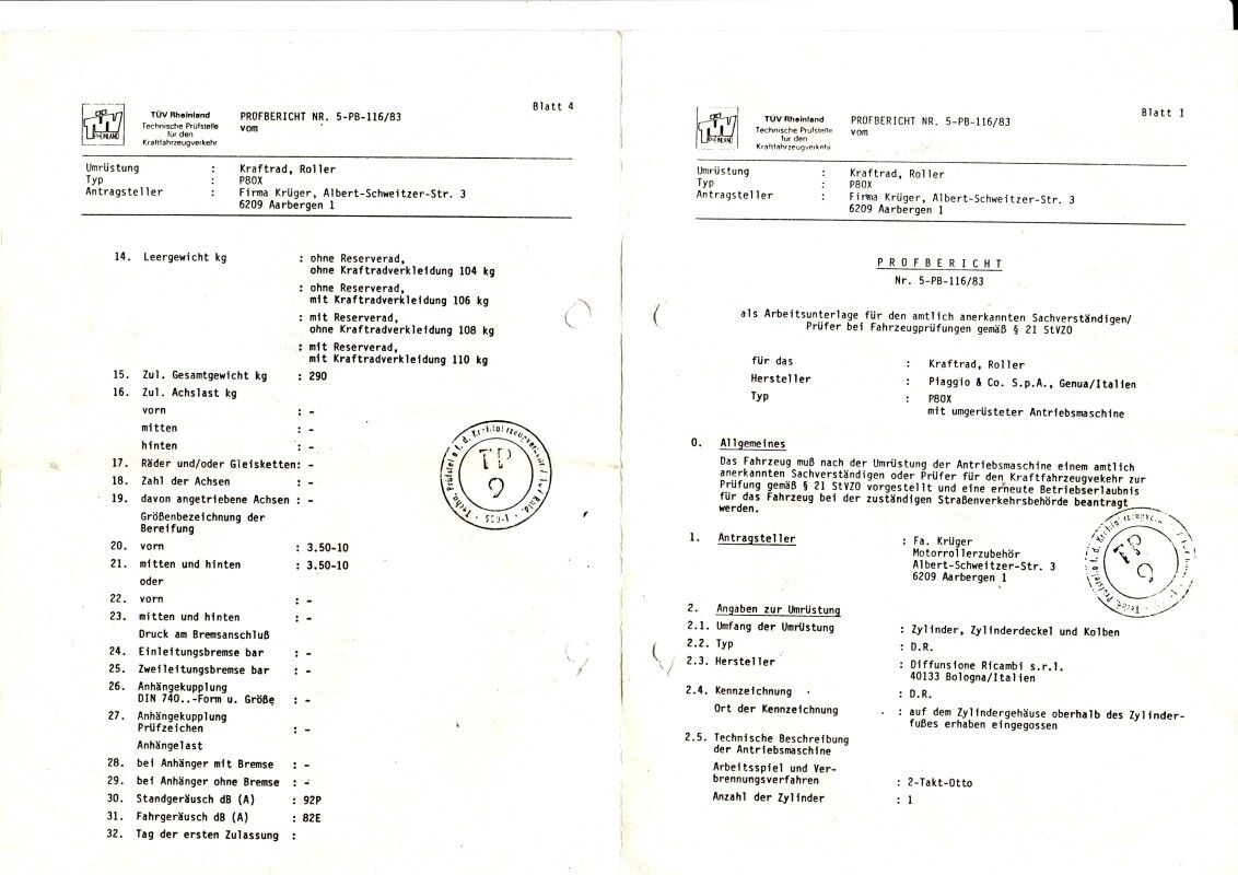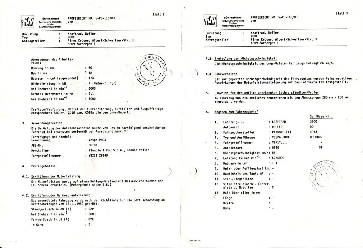 Hallo, habe kompletten Prüfbericht vom TÜV-Rheinland für den Umbau der PX 80 auf 135 ccm DR