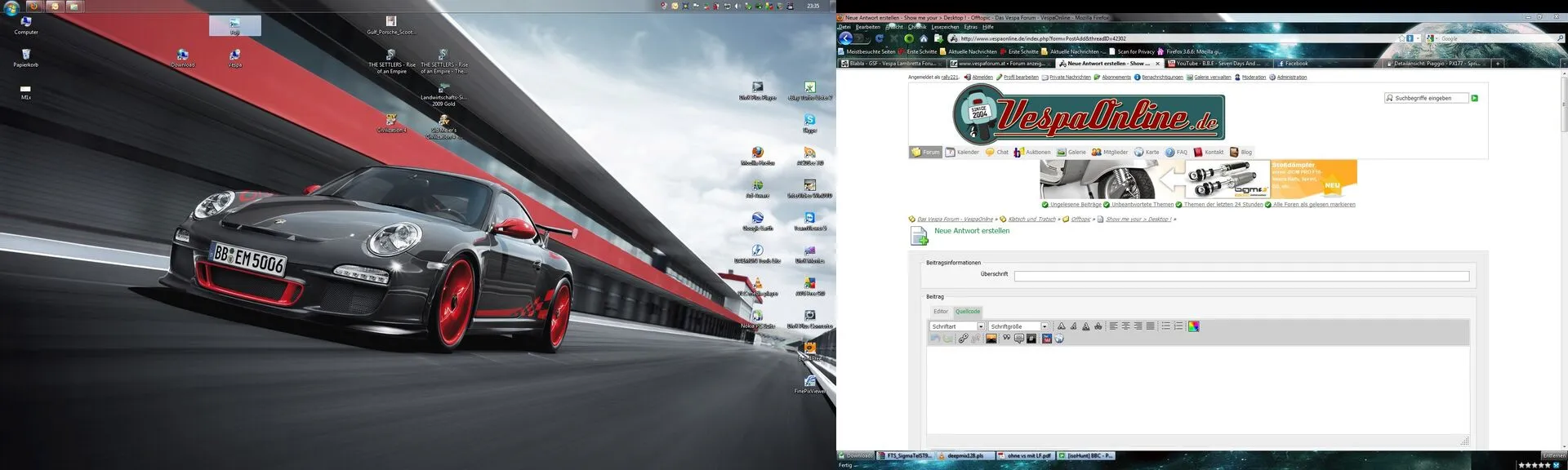 Na da mach ich doch glatt mal mit. Find´s schön, daß doch einige ne Vespa am desktop ham.