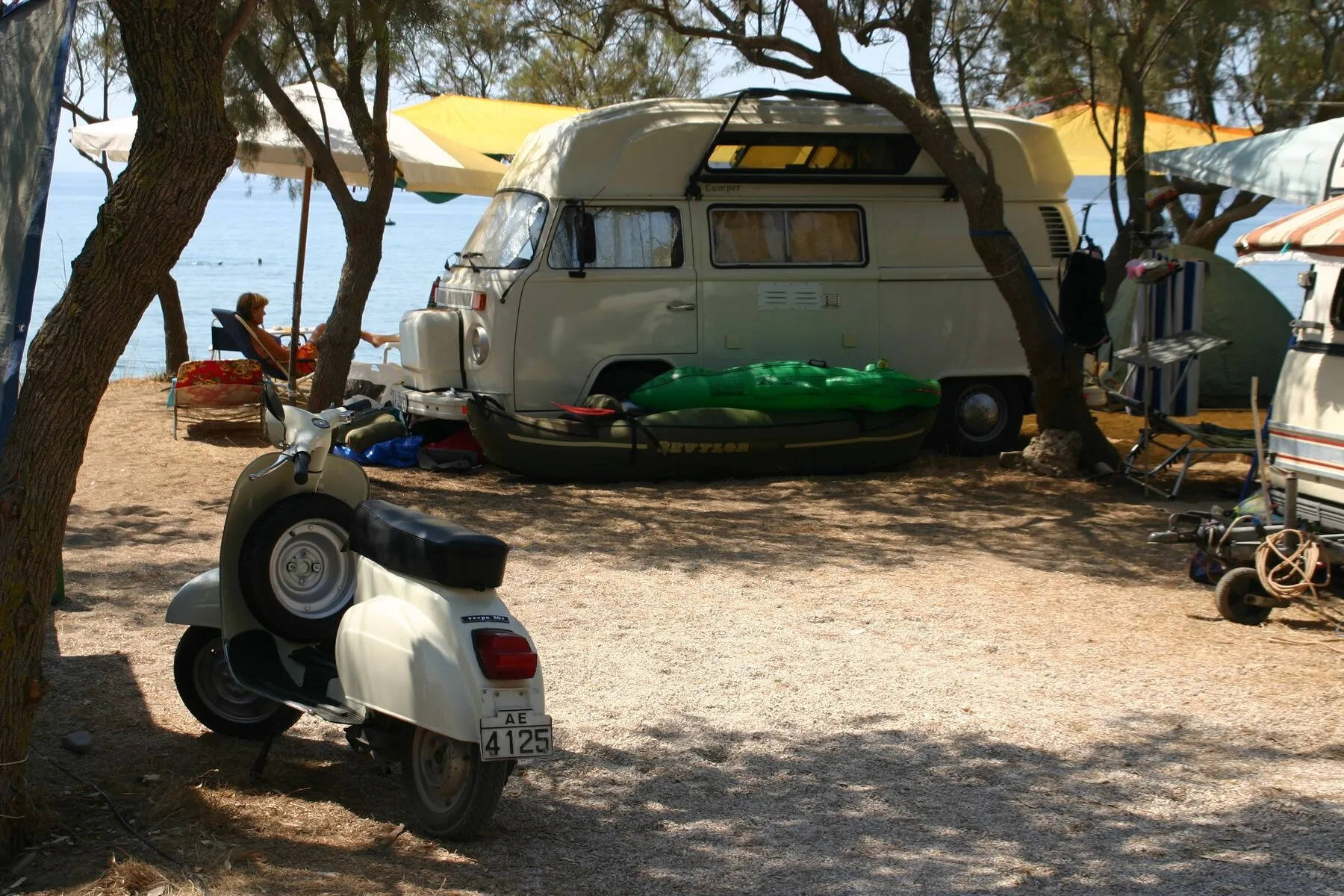 Ich war dann auch sofort mit ihm in einem eher abenteuerlichem English im Gespräch über den T2 die Vespa seine Zündaps den Strich 8er und auch über die Vorzüge einer der wenigen Griechen zu sein die Fahrzeuge restaurieren, pflegen und lieben. Er ist Lackierer und sein Bruder Mechaniker (steckte auf dem Campingplatz auch ständig mit dem Kopf in irgendwelchen Autos) und sie machen das alles zum Spaß neben der Arbeit.