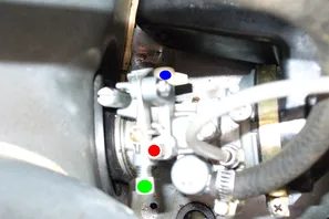 Grün: Gaszugfeststellschraube (wenn der gaszug zu locker ist drehst du die raus bis es passt)