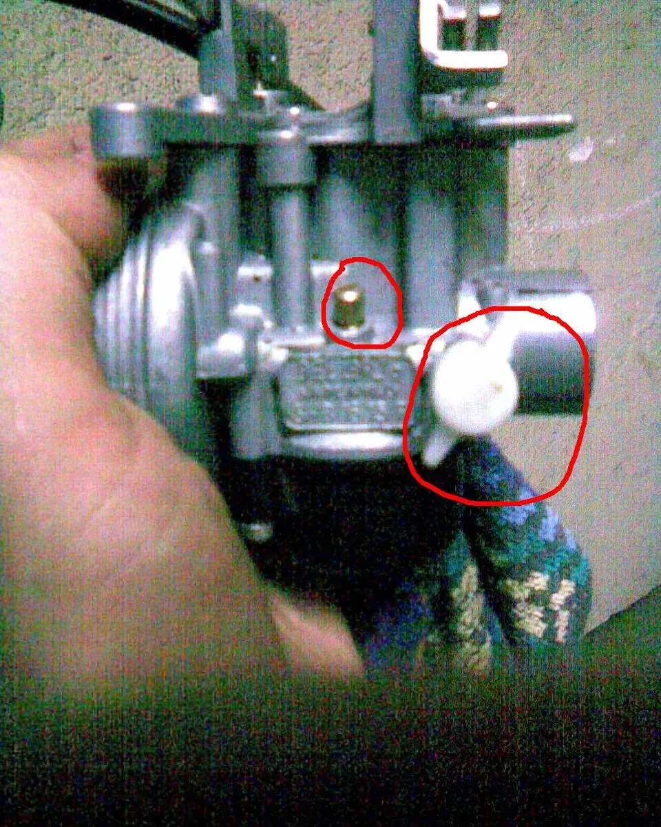 Hat jmd einen Tipp, wie ich das einstellen muss? Für was sind die beiden Schrauben? Die weiße ist für die Gemischeinstellung? und die andere aus Messing?