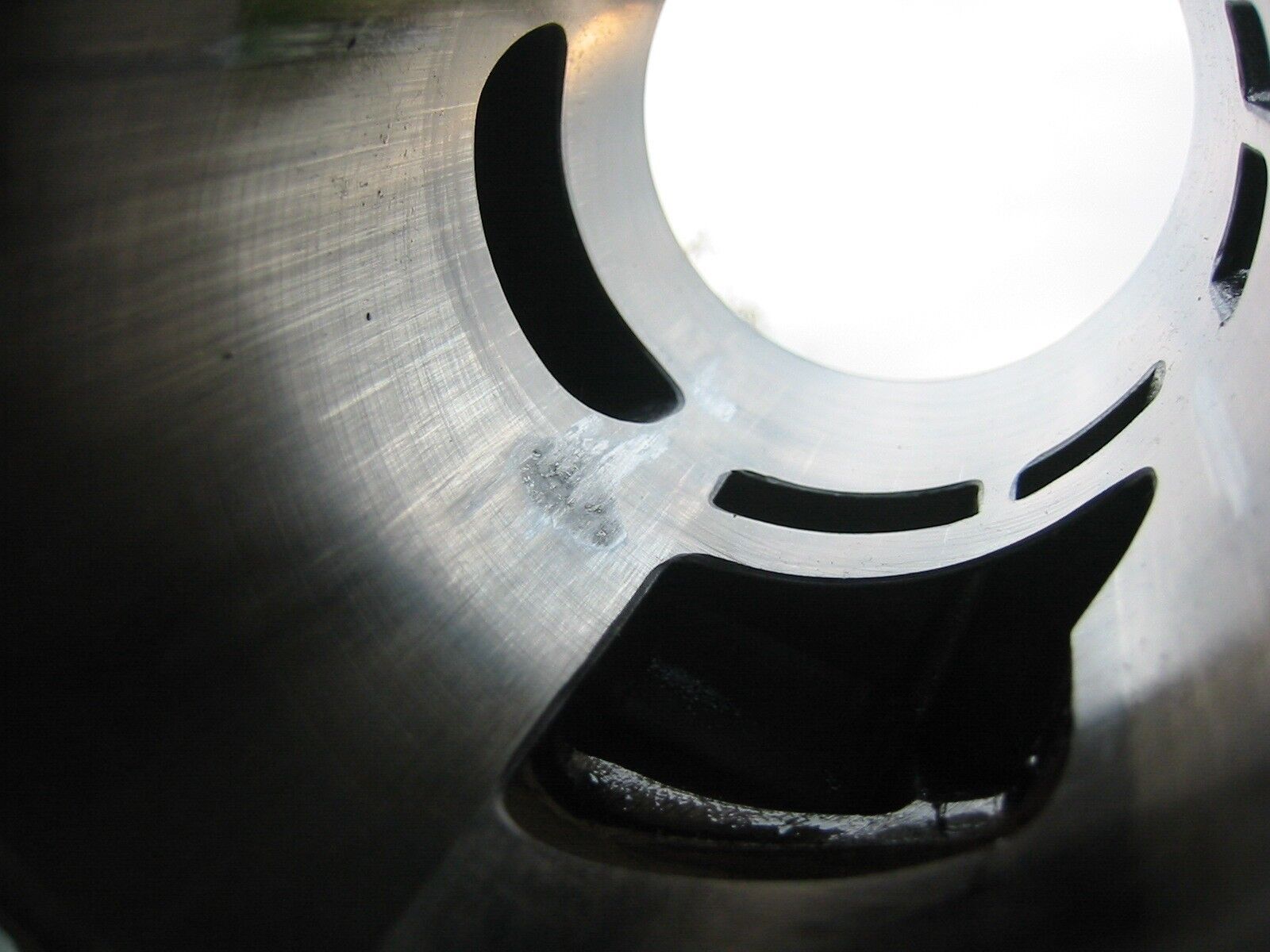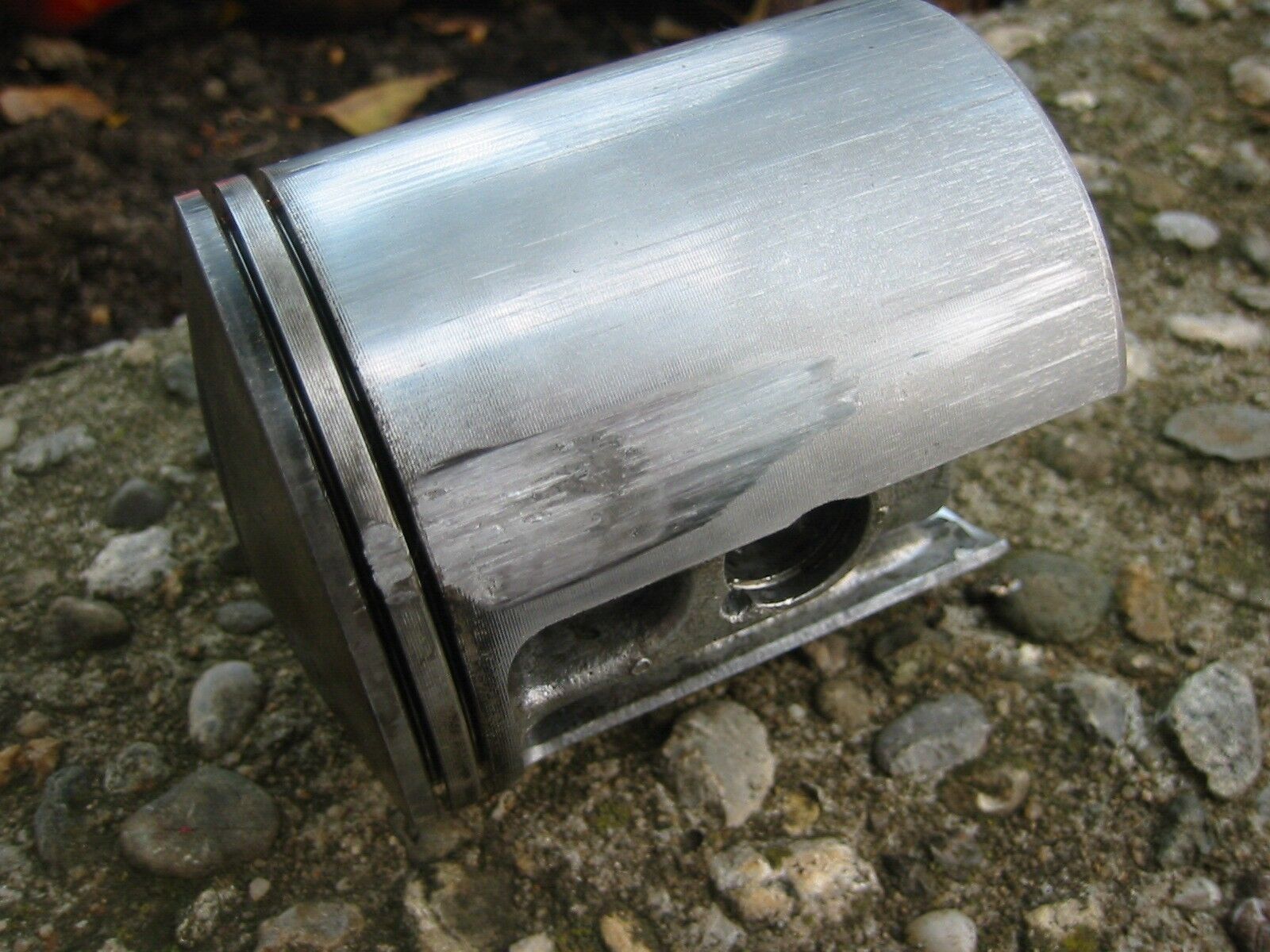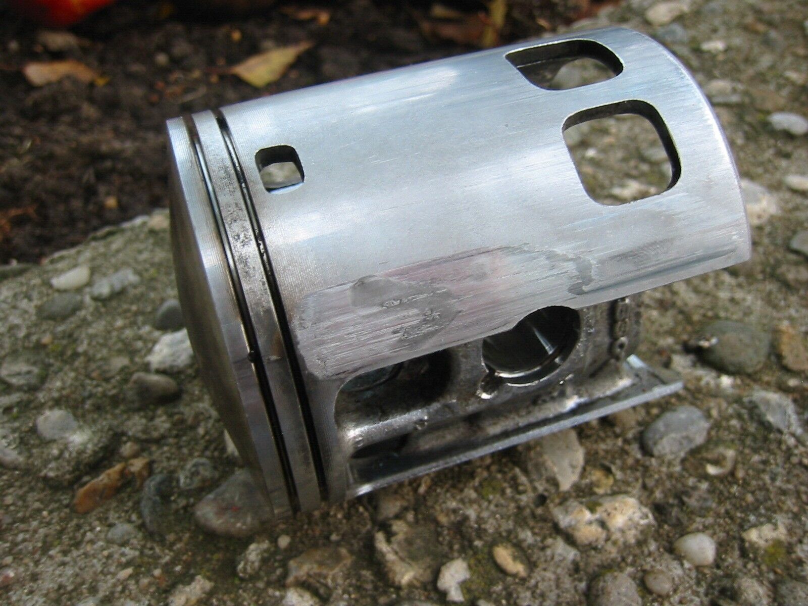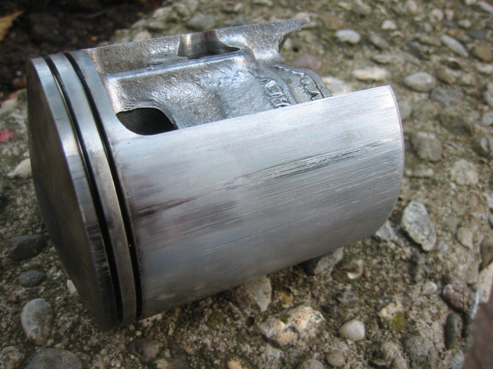 Zu mager bedüst kann fast nicht sein, untenrum etwas zu fett (stottern), Hauptdüse mit 145 auch recht gut dimensioniert (ND 54, Gemischschraube ~3 U. draußen, Nadel X2, ganz unten, Mischrohr AV 266). Mir sind dann klitzekleine Kraterchen auf dem Kolben aufgefallen, direkt unter der Zündkerze. Also womöglich Zündzeitpunkt falsch? Oder Falschluft? Gesabbert hat der Motor nirgends, weder am Ansaugtrakt noch am Zylinder oder Kopf. Getriebeöl riecht nicht nach Benzin.