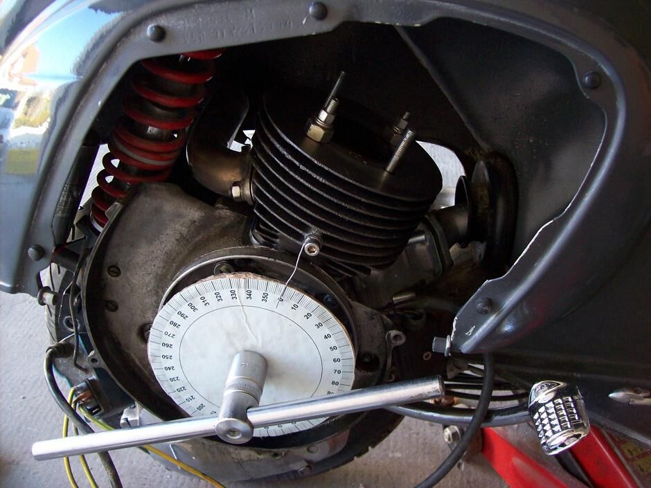 Gradscheibe angebracht. Kolbendach bis auf über Auslass gebracht --> auf 0° gestellt --> im Uhrzeigersinn weitergedreht --> über UT nach richtung Auslass bis Kolbendach obere Kante bedeckt --> Wert abgelesen -->