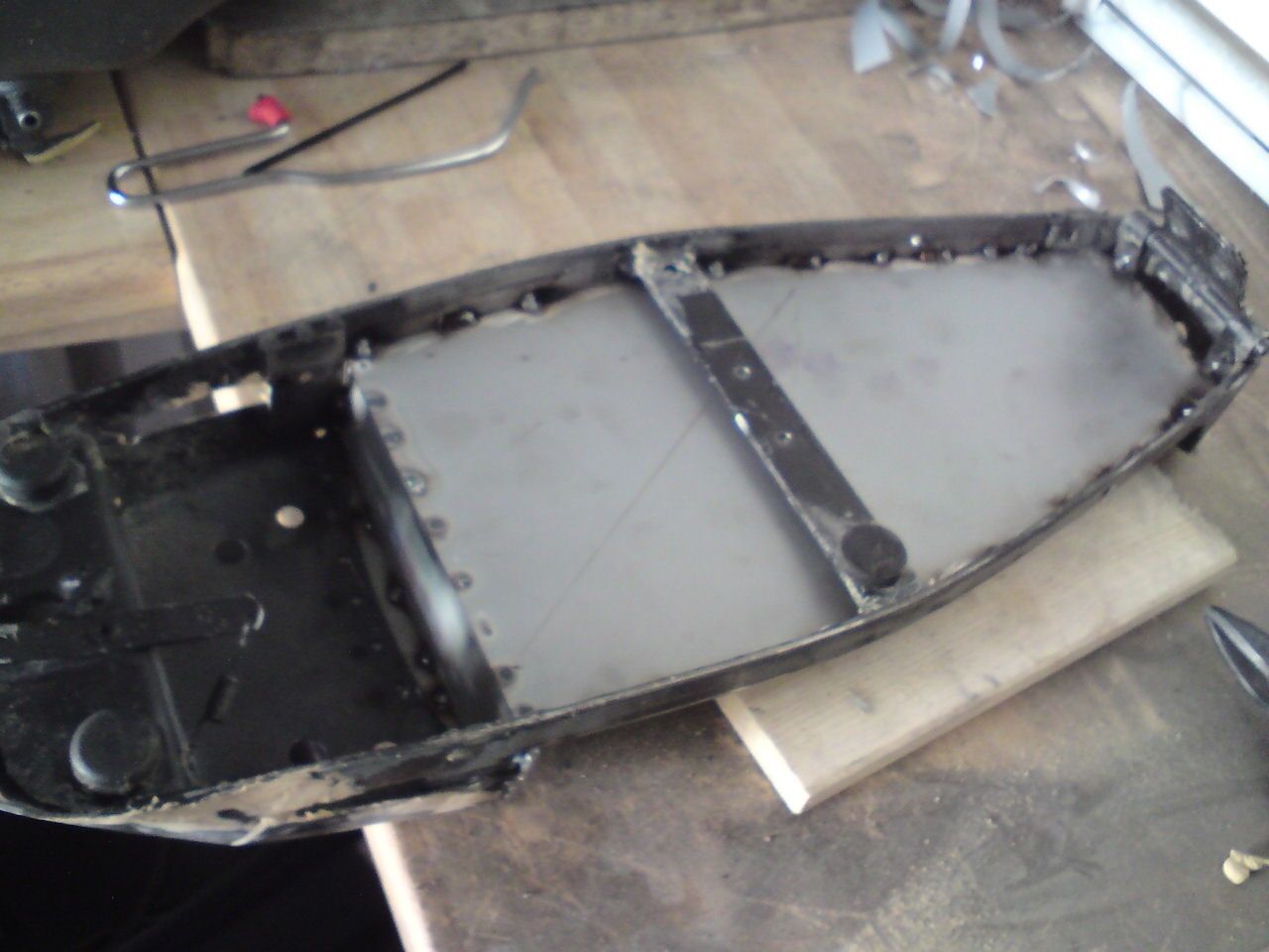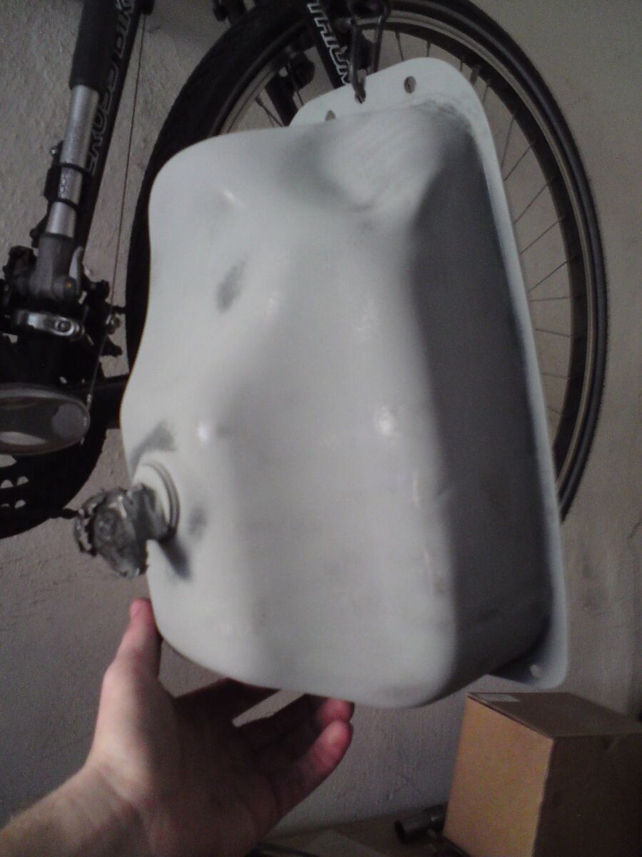 Nach der ganzen Aktion und kein Bock mehr auf Elektrik, widmete ich mich dem "neuen" Tank. Tankverschluss musste weg, da ich sonst meine Sitzbank nicht mehr schließen kann.