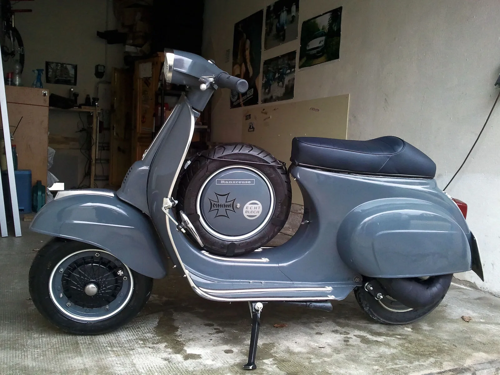 Mir egal, ich hin zum netten Herren in Grün. Er mit raus und voll begeistert von dem Geschoss. Und als ich den Tacho anschaltete hatte er ein rießen Lächeln im Gesicht. "ja wow, net schlecht" hat er gesagt "des neumodische passt ja garnet zu so ner Vespa". Schönen Tag hat er mir gewunschen und ich bin heimgefahren, ach was sag ich, gerutscht, da es zu Regnen begonn.