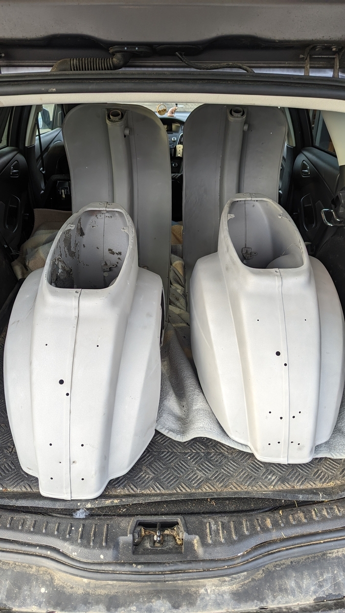 Auch ein paar Neuteile sind gekommen. Die Woche passe ich dann den neuen GFK Kotflügel an. Da bin ich mir noch unsicher ob ich dann den originalen Blechkotflügel verbeult, einen lackierten GFK oder Sichtcarbon weiterhin fahre. Denke wird aber eher etwas mit Lack drauf.