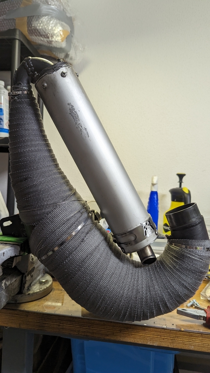 Auch der Auspuff ist zur Verringerung der Geräuschemmision wieder gewickelt worden.