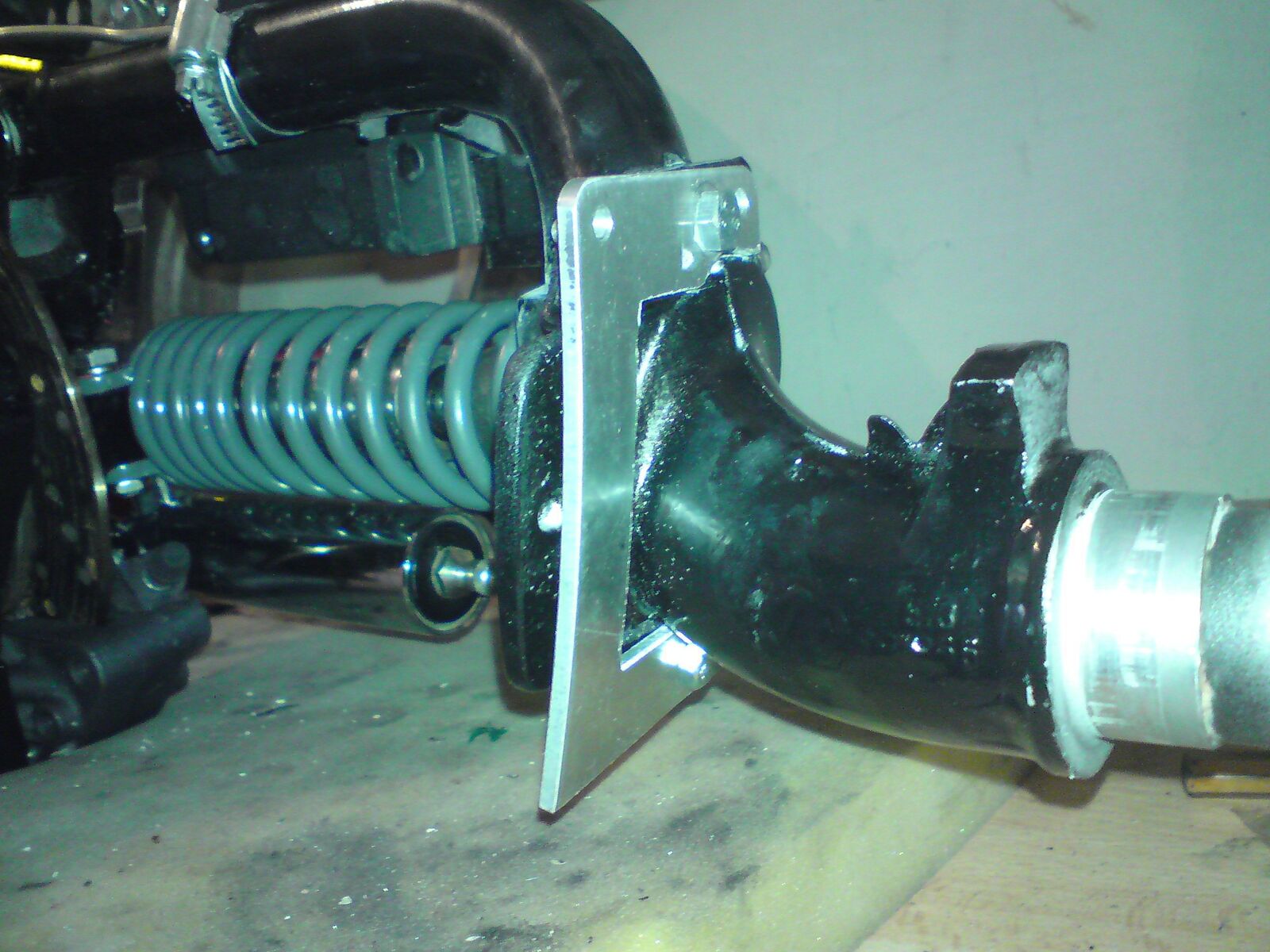 Heute hab ich die alte Gabel rausgeschmissen, den Kotflügel mittels "Adapter-Platte" an der PK Gabel befestigt.