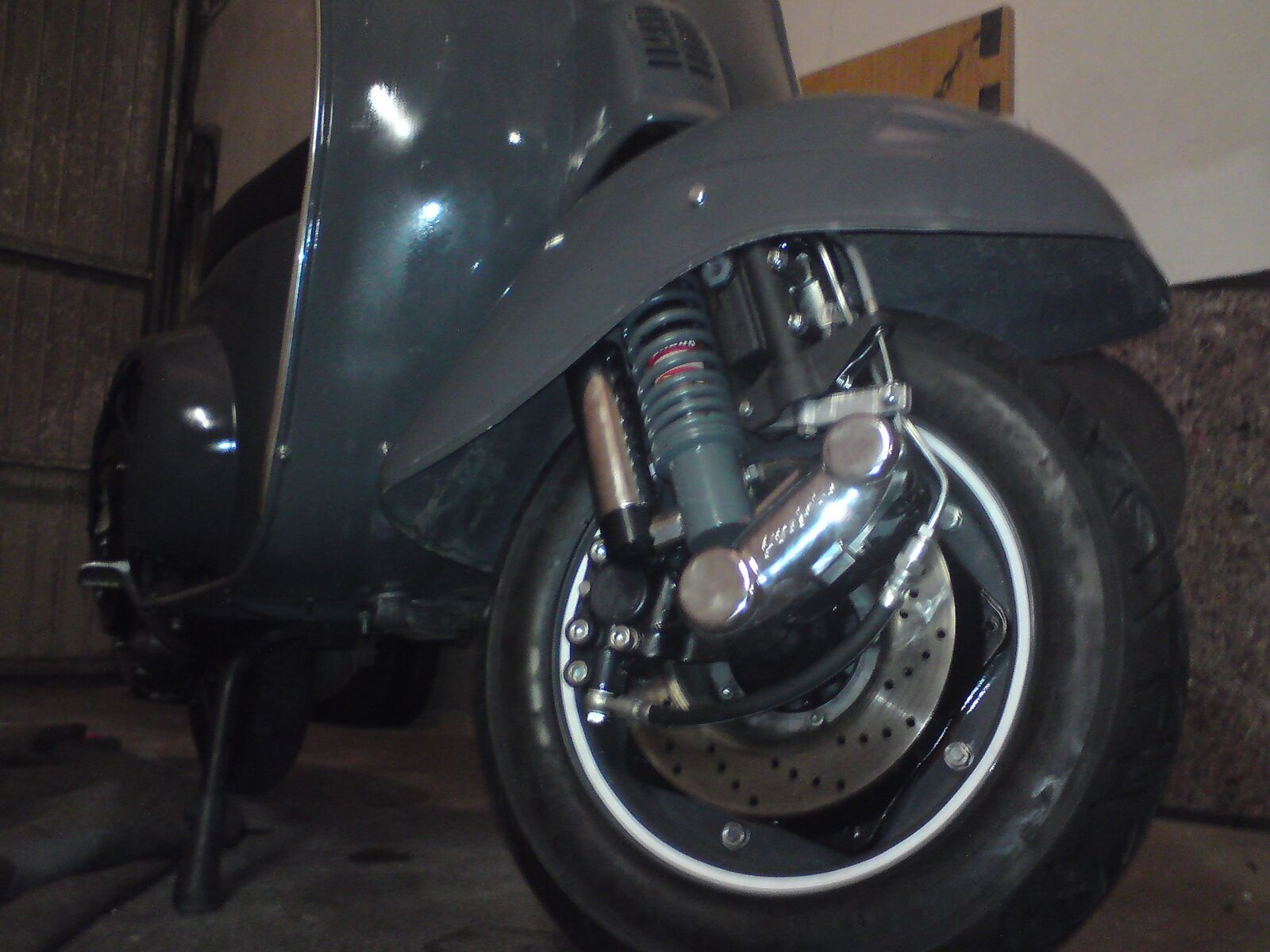 Der Kotflügel passte wie erwartend natürlich nicht. Aber mit ein bißchen Gewalt und biegen ließ er sich dann überreden. Schaut zwar net besonders schön aus von vorne, aber vielleicht wird im Winter über eine bessere Lösung nachgedacht.