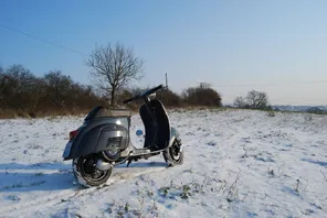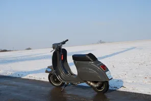 na ich hock mich doch nicht mit Snowboardklamotten auf meine Vespa
